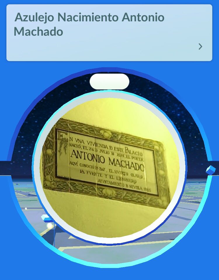 8. Placas Conmemorativas: Pasamos cada día por delante de ellas pero rara vez nos detenemos a leerlas. Si tienes una cerca de casa mira tu mapa Pokemon porque probablemente hay en ella una Pokeparada. Junto al Palacio de las Dueñas tenéis esta que recuerda el nacimiento de Antonio Machado en este lugar.