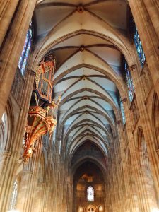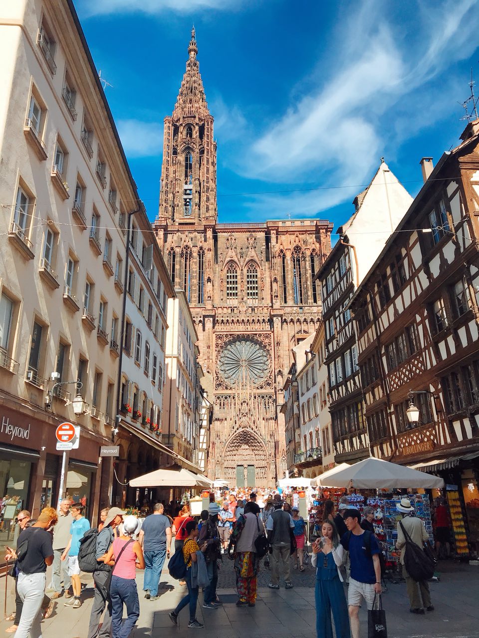 El origen de la ciudad está en la almendra central rodeada de canales que puedes distinguir a primera vista viendo cualquier mapa de Estrasburgo. Probablemente el monumento más representativo de la ciudad sea su Catedral de Notre Dame, símbolo del poder de la burguesía que en la Edad Media tomó el control de la misma frente a su obispo. Si vienes desde la plaza de Gutenberg una estrecha calle crea la perspectiva perfecta para que su alargada fachada te impresione aún más. La Catedral hay que verla de día y de noche, porque la riqueza de la decoración de sus fachadas se transforma con la luz del sol y la iluminación nocturna.
