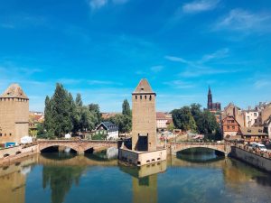 Los canales que atraviesan el barrio y que rodean todo el casco histórico de la ciudad fueron en el pasado un sistema defensivo que protegía a Estrasburgo de las continuas tensiones políticas en la zona. Los llamados Puentes Cubiertos y las Torres defensivas son testimonio del antiguo sistema de murallas que rodeaba la urbe. Para conseguir una de las mejores vistas de la ciudad sube a la terraza panorámica de Barrage Vauban (Presa Vauban). La entrada es gratuita.