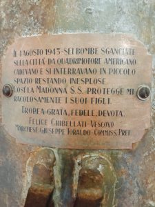 En el interior de la Catedral verás dos bombas de la II Guerra Mundial que, según cuenta la leyenda, por intermediación de la patrona de Tropea, Santa María de Rumanía, no exploraron librando a la población de una catástrofe.