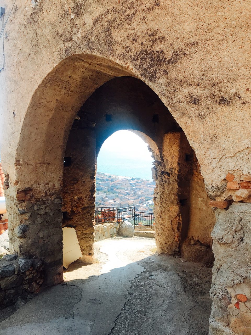 En el extremo sur de la Costa de los Dioses, donde comienza la Costa Viola, encontramos la villa medieval de Nicotera, una localidad a la que también llega el Tropea Express aunque desde la estación hay que ascender al centro. Un arco bajo el imponente castillo Ruffo da acceso a un entramado de estrechas callejuelas. La ciudad medieval se organizaba en torno a los distintos gremios dejando la zona más cercana al mar a los pescadores. La población de Nicotera todavía habla dialecto calabrés y es sorprendente escuchar la enorme influencia del español en esta variedad lingüística.