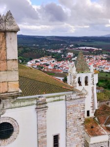 Entre Évora y Elvas te encuentras con esta sorprendente villa dominada por una llamativa torre de color blanco. Esta fortificación forma parte en la actualidad de una Pousada (el equivalente a nuestros Paradores) pero se puede acceder y subir al mirador de la torre de manera gratuita. Todo el complejo amurallado ofrece un agradable paseo.