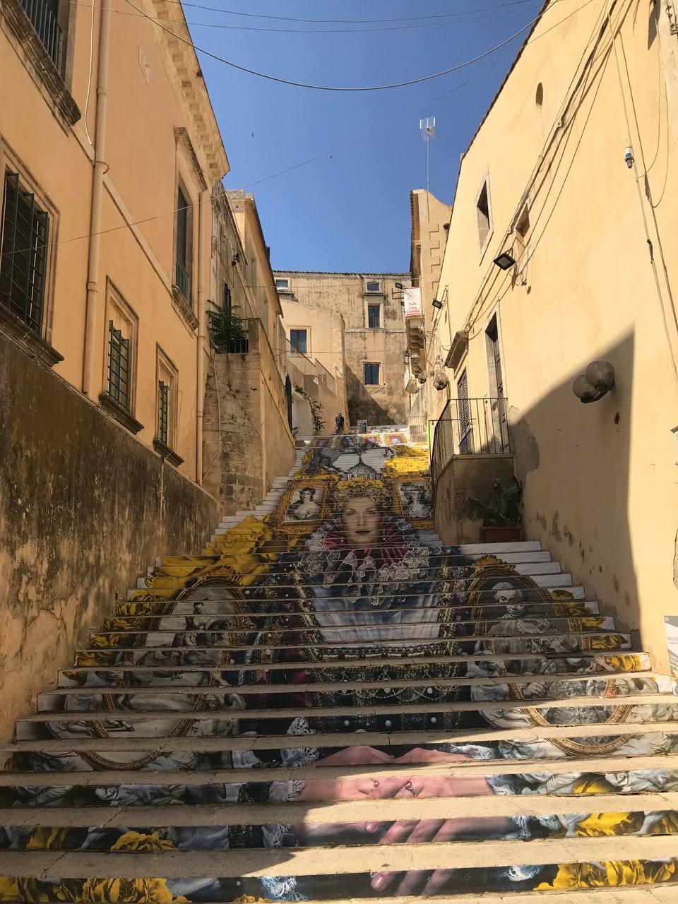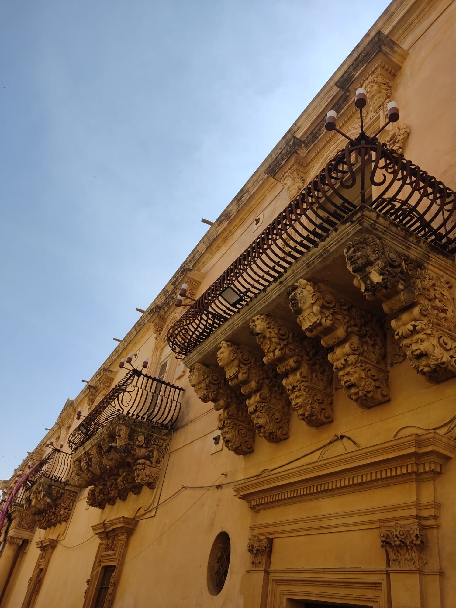 Noto fue una de las mayores sorpresas del viaje. Probablemente la ciudad más monumental que vimos en esta zona de Sicilia. Un terremoto a finales del siglo XVII arrasó con la ciudad preexistente que fue reedificada siguiendo un espectacular plan escenográfico a base de barrocas fachadas de iglesias y palacios. Parece irreal, es como un decorado que te traslada a siglos pasados. Los puntos más interesantes están en torno al Corso Vittorio Emanuele entre la Fontana d´Ercole y la piazza del Duomo. La más imponente escenografía es esta plaza en la que se enfrentan el poder político (Palazzo Ducezio) y el religioso (con il Duomo o Catedral sobre la escalinata). Existe una entrada combinada que te permite visitar el interior del Ayuntamiento (Palazzo Ducezio) y el Teatro Comunale. Te recomiendo perderte por las callejuelas detrás de la Catedral para descubrir algunos grafitis e intervenciones artísticas que te dejarán con la boca abierta.