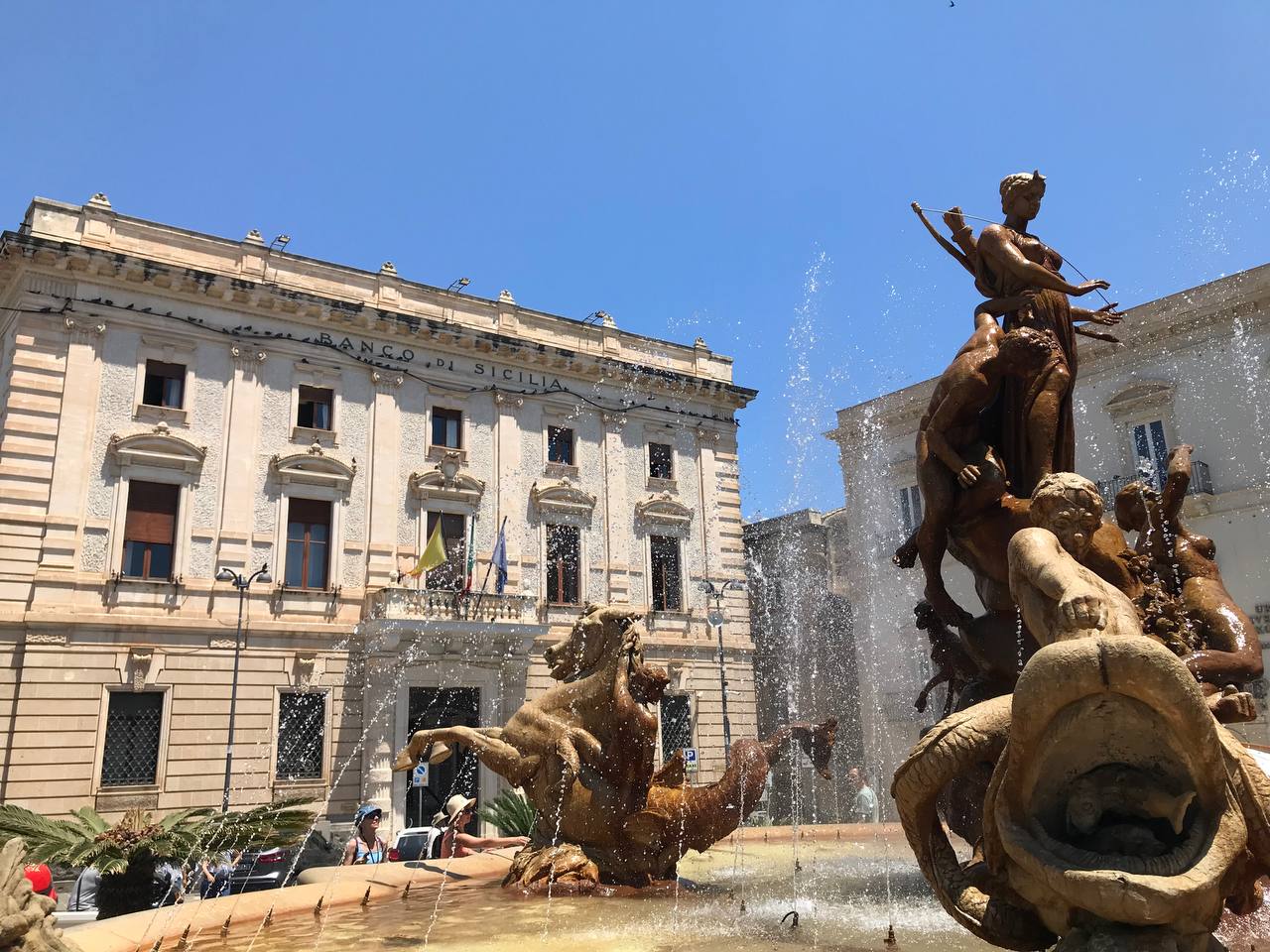 Siracusa es una de las ciudades más famosas de la Antigüedad, la cuna de Arquímedes. Está a menos de 1 hora en coche de Catania. También hay trenes directos entre ambas ciudades. La mayor parte de los puntos interesantes de la ciudad están en la Isla de Ortigia, unida por un par de puentes a la ciudad moderna. Antes de entrar en la isla dejamos el coche junto a la Basílica de Santa Lucia un espectacular complejo formado por la iglesia donde se custodia la pintura de Santa Lucia de Caravaggio y el templo octogonal que acoge la tumba de la santa patrona de la ciudad. Dando un paseíto llegamos a la Isla de Ortigia y nos fuimos encontrando con los principales puntos de interés: las ruinas del Templo de Apolo, la Fuente de Diana, la antigua Judería o la espectacular Catedral de Siracusa a la que, sin duda, vale la pena entrar para ver el contraste de su impresionante fachada barroca con la sobria arquitectura del interior que integra las columnas del antiguo templo griego dedicado a Minerva. Aunque Siracusa es una ciudad que no te puedes perder, en contraste con la tranquilidad de Catania la vimos atestada de turistas y nos agobió un poco. Por ello decidimos continuar a Noto.
