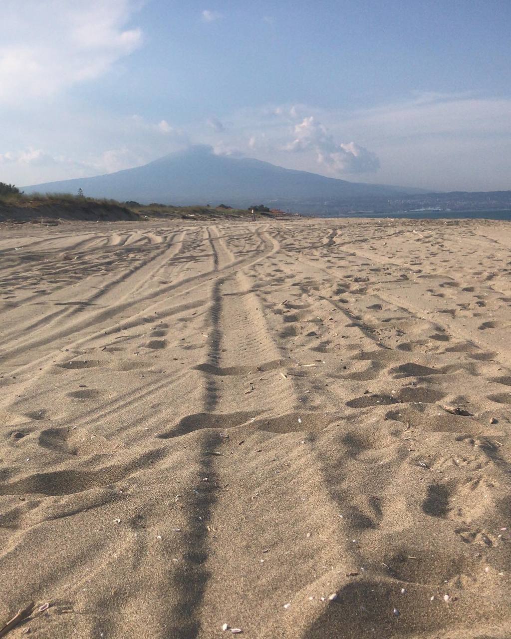 Playa en Catania. Fuimos en pleno mes de junio y después del turisteo apetecía refrescarse un poco. A pocos kilómetros de Catania hay muchos «Lidos», es decir, playas de pago. Como nos gusta la aventura y las playas con chiringuito y hamaca no nos atraen nada buscamos algo un poco más salvaje. A 15 minutos de Catania y con unas vistas increíbles del Etna encontramos esta estupenda playa.