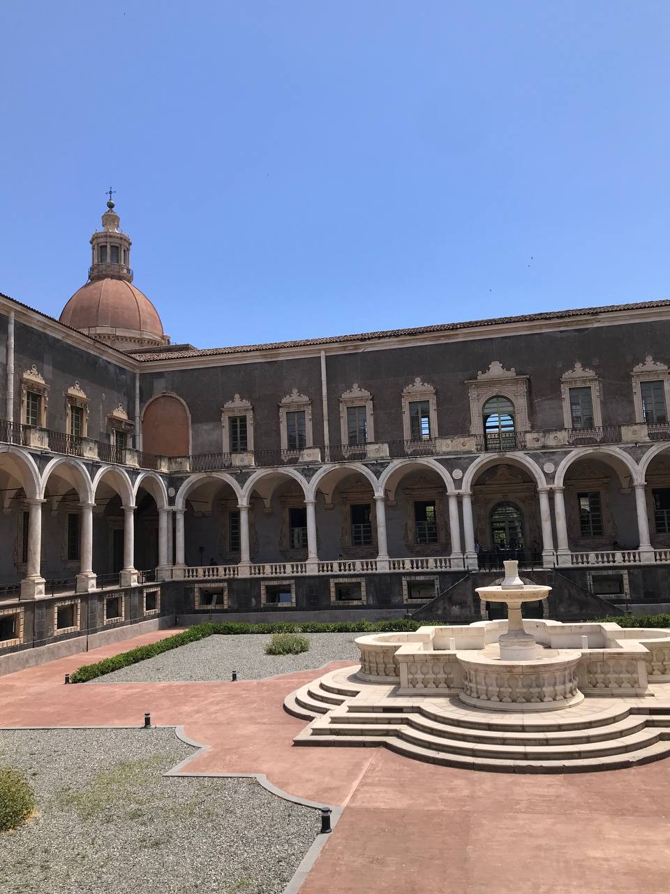 Otros lugares que no te puedes perder son la Via Crociferi, una pequeña calle en la que se concentran algunas de las fachadas de iglesias más monumentales de la ciudad. Muy cerquita de ella el Teatro Grecorromano al que se accede pagando entrada desde la Via de Vittorio Emanuele. Al impresionante Castillo Ursino también merece la pena que te acerques. También nos encantó un enorme edificio de la Universidad de Catania que fue el antiguo convento de San Nicolo L´Arena. La inmensa iglesia expone las estructuras que procesionan durante la festividad de la patrona, Santa Agata, y los claustros del edificio anexo, hoy Facultad de Humanidades, merecen un paseo.