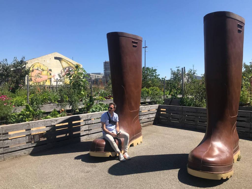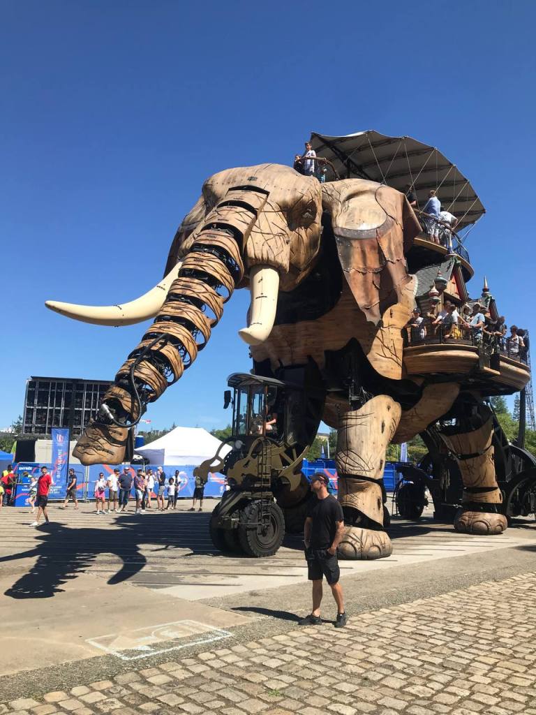Nada más cruzar el puente Ana de Bretaña accedemos al mundo de fantasía inspirado en la obra del escritor nantés Julio Verne. El enorme elefante mecánico sale del invernadero que hay frente al puente pero no es raro verlo pasear por las calles de la isla. Subir a él cuesta 8 euros pero nosotros nos confirmamos con verlo en movimiento desde tierra. En todo el paseo fluvial que hay entre el invernadero y la punta occidental de la isla iremos encontrando curiosas obras de arte contemporáneo como «On marcher sur la lune» una divertida instalación de camas elásticas en el interior de cráteres lunares;»Invedus-bottes», unas impresionantes botas de agua gigantes o Les Anneaux, unos llamativos anillos que se iluminan por la noche.