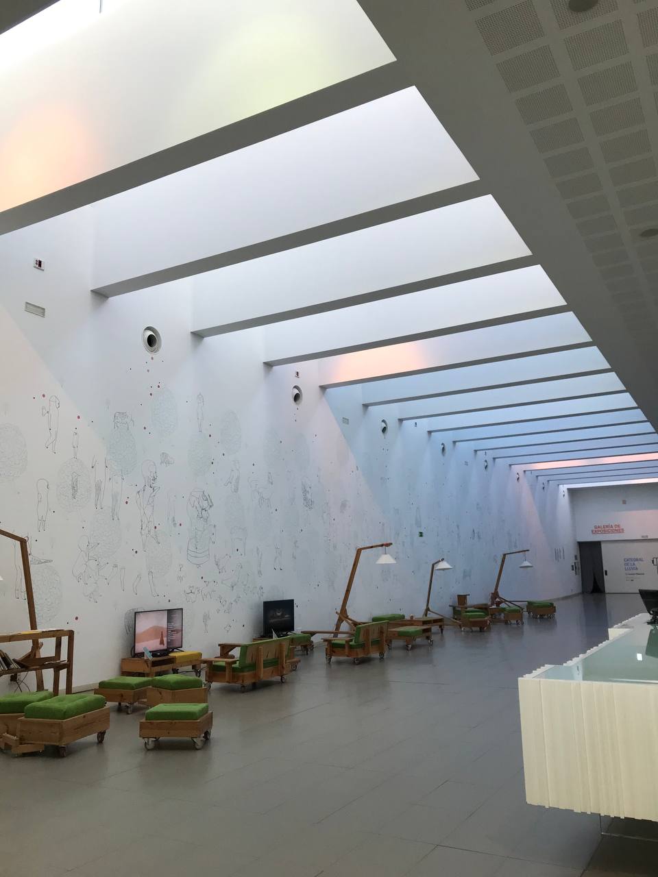 Este complejo, a pocos kilómetros de Gijón, es el edificio más grande de España. Construido durante la Dictadura Franquista como un centro de formación y adoctrinamiento para los hijos de los obreros asturianos, se reconvirtió en la segunda década del siglo XXI en un inmenso espacio donde ocurre de todo. Actualmente es sede de la Escuela de Arte Dramático, del Conservatorio de Danza, del teatro más grande de Asturias, la radio televisión autonómica, centros de formación profesional y universitaria y distintos organismos del gobierno regional. Vale la pena acercarse solo por admirar la impresionante arquitectura, pero si te viene bien el horario puedes disfrutar de una visita guiada al espacio, infórmate aquí. Por libre podrás ver el inmenso patio central, el exterior de la torre, la iglesia y el teatro y los jardines. Te recomiendo además visitar LABoral, centro de arte y creación industrial, un espacio donde anualmente se realizan distintas residencias artísticas a las que se invita a artistas visuales a crear una obra específica para el lugar.