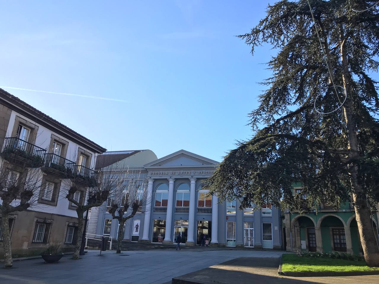 Desde el Centro Niemeyer se cruza la vía del tren y la ría por un doble puente que te lleva directamente al centro de la ciudad, pequeño y muy coqueto. Dimos un rápido paseo por la Plaza de España, el colegio de San Nicolás, los soportales de la calle Galiana y el Parque de Ferrera que nos gustó mucho.