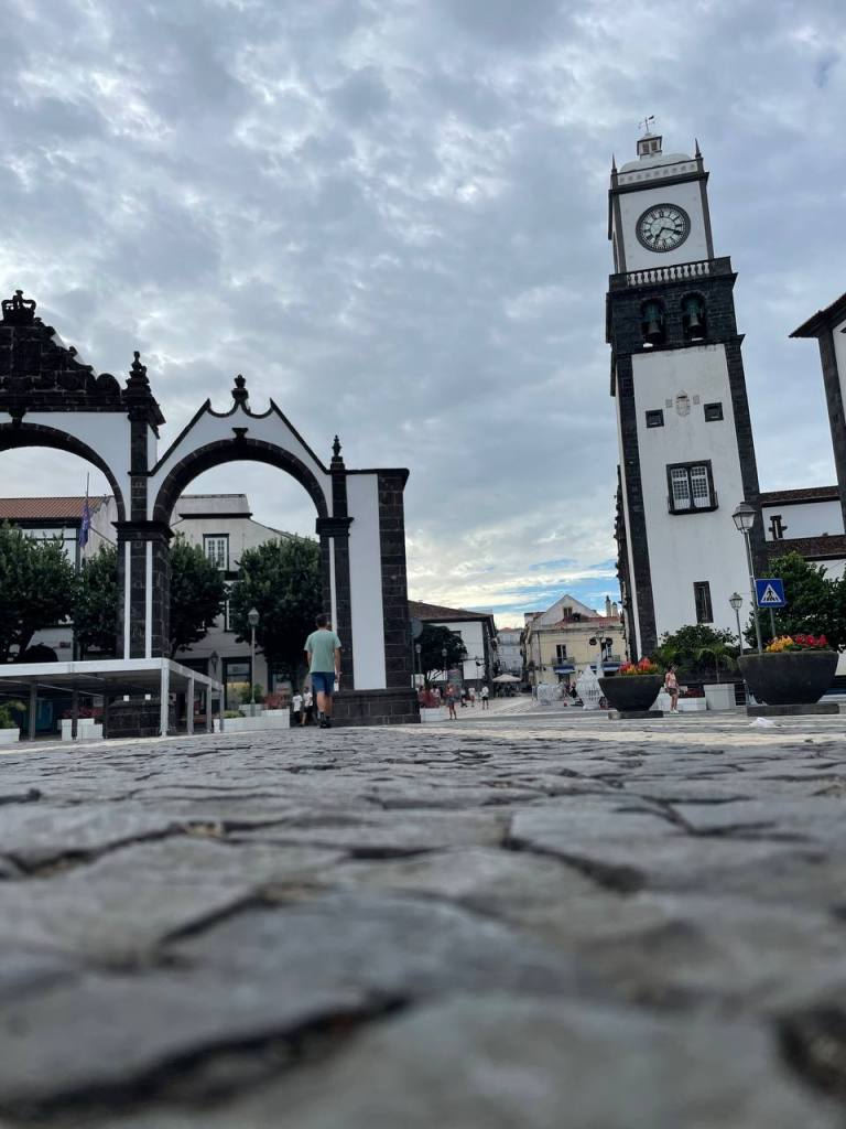 Le dedicamos a la ciudad el día de llegada a la isla y algunas tardes a la vuelta de hacer ruta. El casco histórico es pequeño pero muy similar al de cualquier ciudad portuguesa. Los principales puntos de interés se concentran en torno las Portas da Cidade, un arco monumental que históricamente daba acceso a la ciudad desde el puerto. A dos pasos están la iglesia matriz de San Sebastián, la principal de la isla, y la Cámara Municipal (el Ayuntamiento). Desde ahí se abren una serie de callejuelas peatonales que desembocan por un lado a la Marina de Ponta Delgada (el puerto deportivo) con una moderna galería de restaurantes y locales comerciales y por el otro al Forte de Sao Bras, un antiguo fuerte militar sobre el mar.