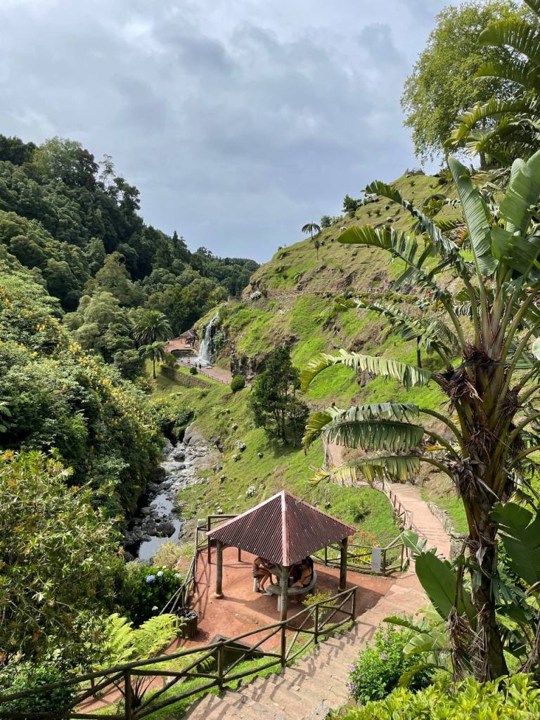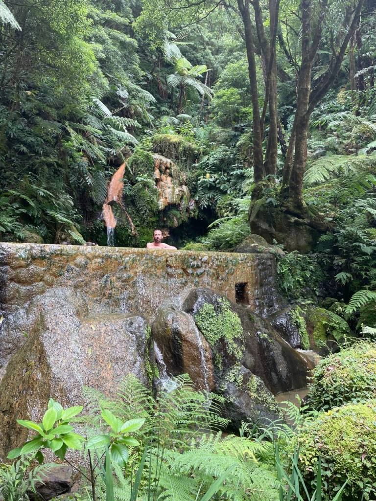 El Centro de Interpretação Ambiental da Caldeira Velha es uno de esos lugares que deben estar en tu lista de imprescindibles si visitas Azores. Para nosotros fueron las mejores aguas termales que visitamos. Te recomiendo reservar previamente en su web y así no tener que esperar a que queden plazas libres. Hay un turno cada 90 minutos y la entrada completa (que incluye la opción de baño) cuesta 8 euros. Hay dos piscinas de agua caliente y una espectacular cascada donde también te puedes bañar.