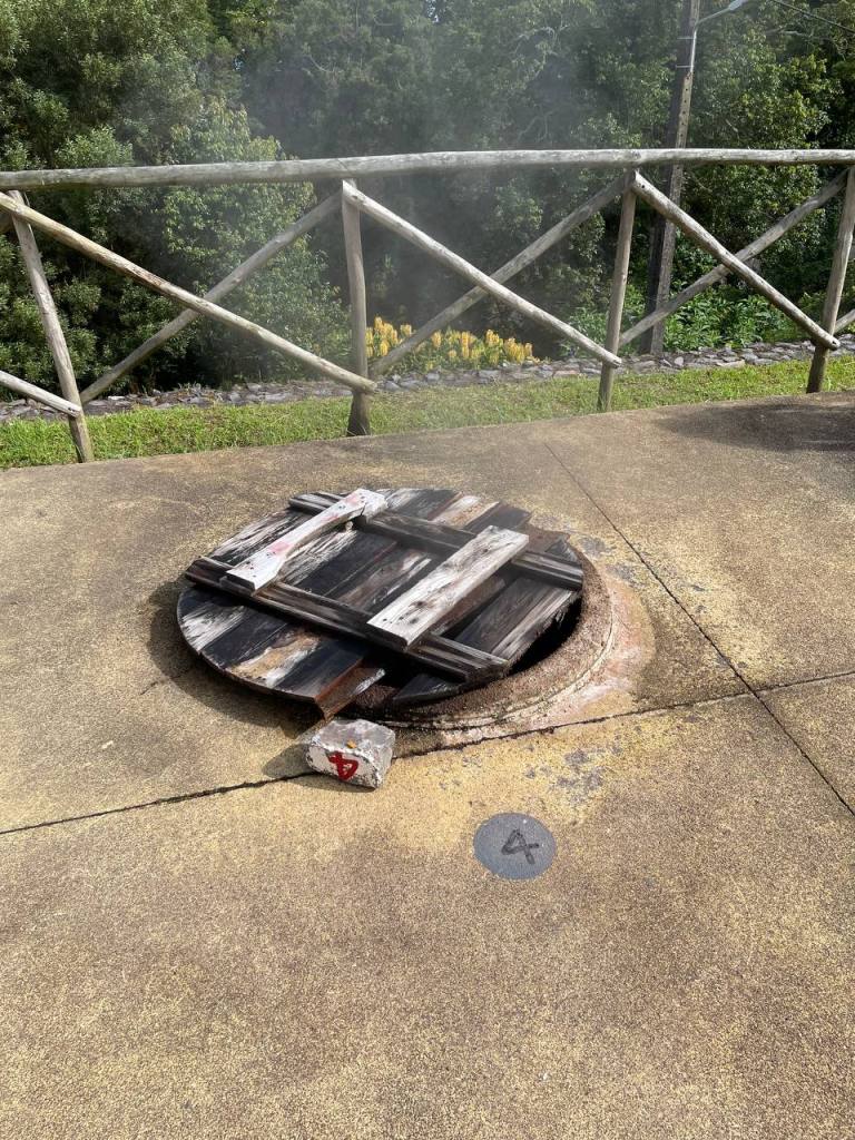 Tras el almuerzo fuimos a las Fumarolas aunque si tienes oportunidad te recomiendo que vayas más cerca de mediodía para vivir el momento en el que los restaurantes sacan las ollas de los «cráteres». Para acceder al recinto hay que pagar 3 euros por coche. Nosotros dimos un paseo por las fumarolas y disfrutamos de las impresionantes vistas de ese lado de la laguna de Furnas antes de descubrir una de las sorpresas más agradables de nuestro viaje: el Parque de Grená. Se trata de un jardín botánico recuperado a finales de 2019 por lo que todavía existe poca información sobre él en guías y blogs. La entrada vale 10 euros. En su interior tiene un recorrido preparado para visitar un par de cascadas donde puedes bañarte e incluso un jacuzzi al aire libre donde relajarte. A lo largo del recorrido hay varias fotos que te muestran el antes y el después de la recuperación ambiental de este espacio que durante años de abandono se convirtió prácticamente en un basurero.
