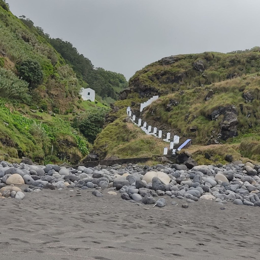 Llegó la hora del almuerzo y decidimos hacer una parada en Sete Cidades. Intentamos comer en Lagoa Azul pero estaba lleno y al final lo hicimos en Sao Nicolau, un sitio popular con buffet libre en el que comimos maravillosamente. Para reposar la comilona nos dirigimos a la Praia Dos Mosteiros, a tan solo 10 kilómetros, aunque pequeña es supertranquila y con unas visitas impresionantes. Retomadas las fuerzas dimos un paseo superagradable por el pueblito y la costa hasta las Piscinas naturales de Caneiros para darnos el último chapuzón antes de acabar el día.