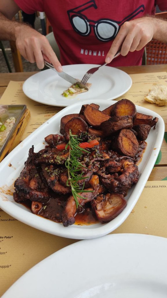 En cuanto a nuestra experiencia gastronómica en Ponta Delgada la verdad es que no fue muy positiva. La oferta de locales auténticos es limitada y al albergar la ciudad la mayor parte de los alojamientos de la isla los visitantes que durante el día se reparten por distintos puntos de San Miguel, durante la noche se concentran en la capital siendo en agosto imposible conseguir mesas en los restaurantes más recomendados que, además, no admiten reserva. Intentamos un par de días ir a A Tasca y no pudo ser. Al final acabamos cenando en el apartamento la mayor parte de las noches. Imaginamos que fuera de temporada será más fácil conseguir sitio en los restaurantes de Ponta Delgada. Nuestra experiencia con los almuerzos en el resto de la isla no tuvo nada que ver y fue más que positiva. Si quieres tomar una copa con vistas al mar en Ponta Delgada te recomendamos Cais da Sardinha.