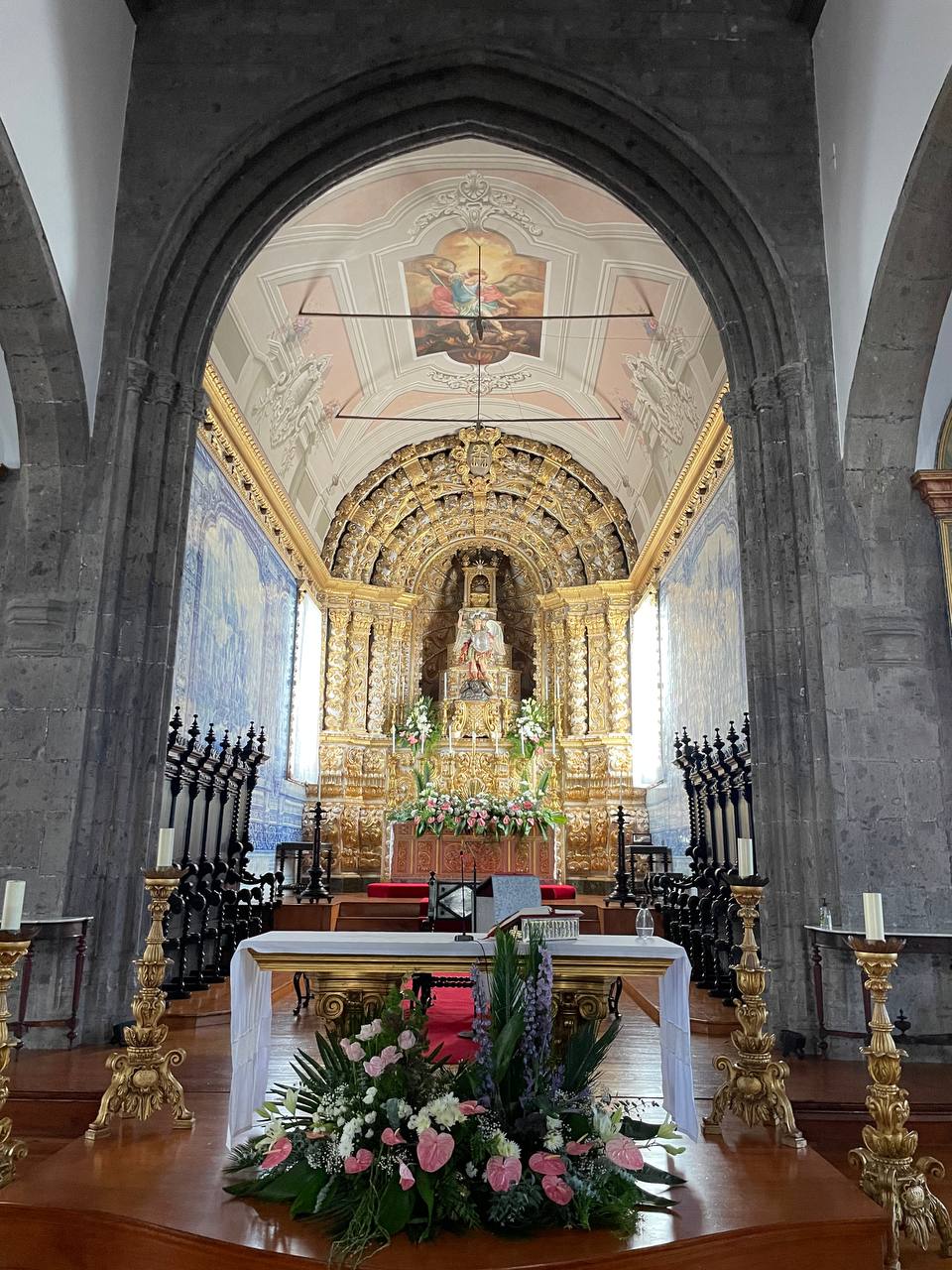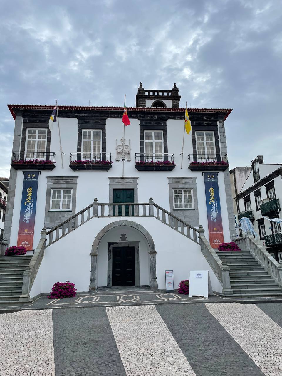 Le dedicamos a la ciudad el día de llegada a la isla y algunas tardes a la vuelta de hacer ruta. El casco histórico es pequeño pero muy similar al de cualquier ciudad portuguesa. Los principales puntos de interés se concentran en torno las Portas da Cidade, un arco monumental que históricamente daba acceso a la ciudad desde el puerto. A dos pasos están la iglesia matriz de San Sebastián, la principal de la isla, y la Cámara Municipal (el Ayuntamiento). Desde ahí se abren una serie de callejuelas peatonales que desembocan por un lado a la Marina de Ponta Delgada (el puerto deportivo) con una moderna galería de restaurantes y locales comerciales y por el otro al Forte de Sao Bras, un antiguo fuerte militar sobre el mar.