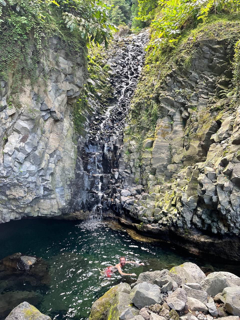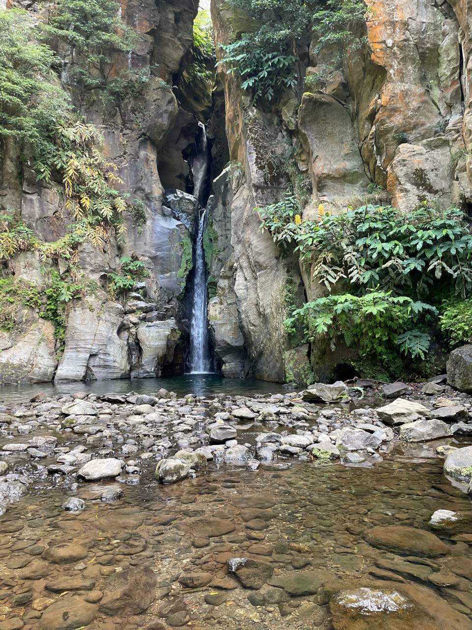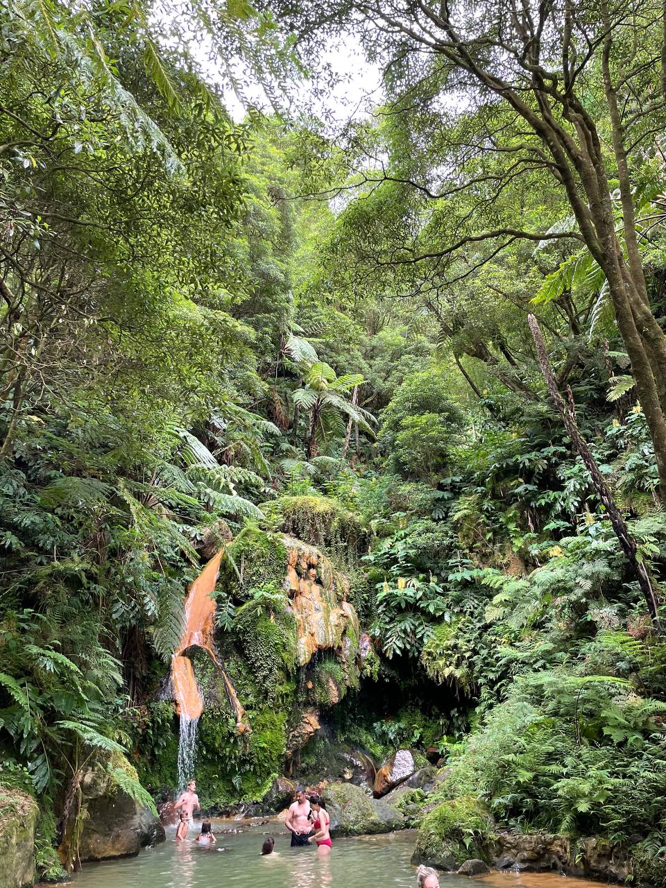 El Centro de Interpretação Ambiental da Caldeira Velha es uno de esos lugares que deben estar en tu lista de imprescindibles si visitas Azores. Para nosotros fueron las mejores aguas termales que visitamos. Te recomiendo reservar previamente en su web y así no tener que esperar a que queden plazas libres. Hay un turno cada 90 minutos y la entrada completa (que incluye la opción de baño) cuesta 8 euros. Hay dos piscinas de agua caliente y una espectacular cascada donde también te puedes bañar.