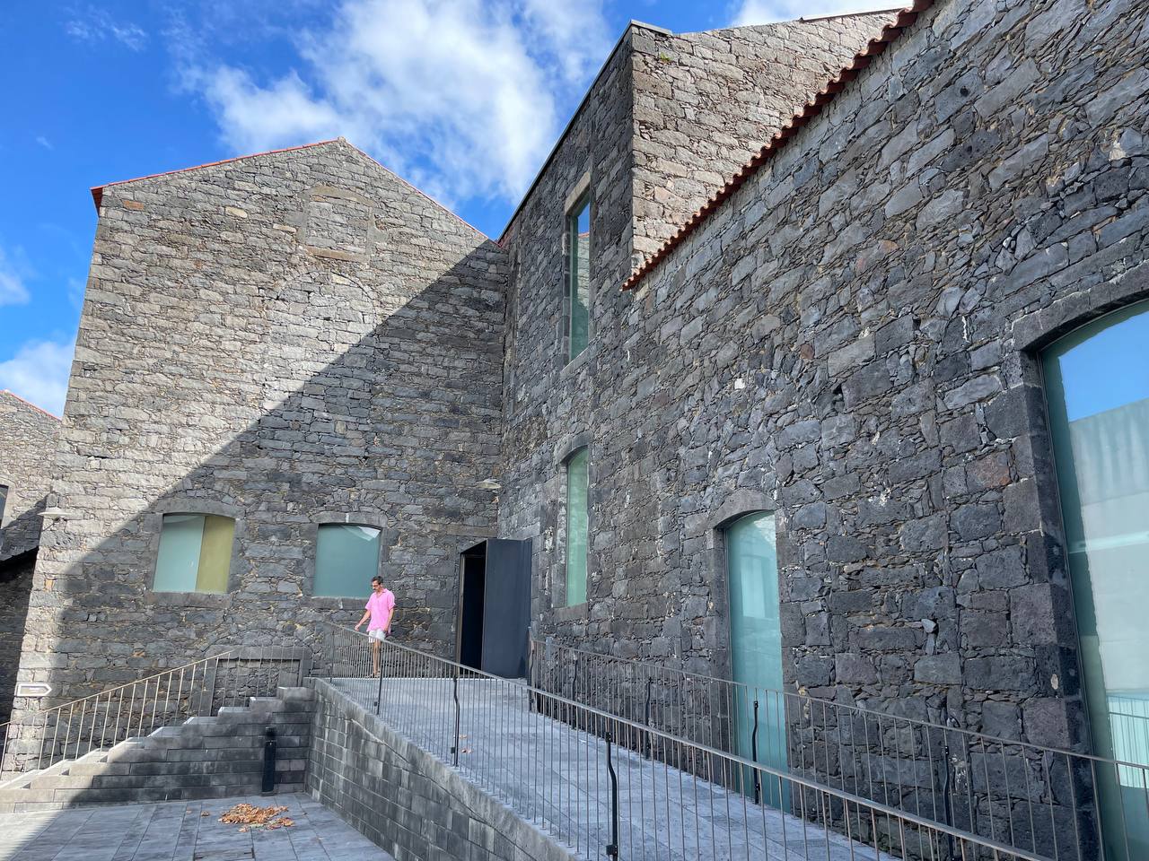 Después de 3 días de naturaleza nos decidimos por una ruta más urbana y fuimos a Ribeira Grande, la segunda ciudad de la isla, que se encuentra a unos 20 minutos en coche de Ponta Delgada. Aparcamos en el Centro de Arte Contemporáneo Arquipélago y desde allí fuimos andando a todas partes. Este museo nos enamoró. Se trata de una antigua fábrica de licores y tabaco transformada en el centro cultural más importante de la isla. Además de una arquitectura impresionante el complejo cuenta con una librería especializada, un centro para residencias artísticas, una caja negra para representaciones escénicas y, en el momento en el que nosotros lo visitamos, tres exposiciones de arte contemporáneo. La entrada cuesta 3 euros y es, sin duda, uno de esos lugares que disfrutarás si eres un friki de la Cultura como nosotros.
