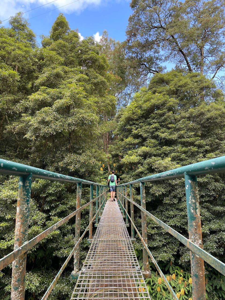 Una de las experiencias más chulas de las Azores fue hacer un par de rutas de senderismo que nos recomendaron. Era el tipo de plan que nos apetecía en este viaje «slow» y que te recomendamos si estás más de 5 días en Sao Miguel. Os aseguro que las rutas que hicimos no requieren un esfuerzo excesivo y aunque están calificadas de dificultad media si vas con zapatillas de deporte y estás acostumbrado a andar no te van a suponer mucho esfuerzo. Ese día comenzamos aparcando en Caldeiras de Ribeira Grande, junto al Restaurante Caldeiras donde aprovechamos para reservar para el almuerzo. La ruta comienza junto al parking, donde puedes ver los huecos para las ollas del cocido que se hace con el vapor de agua. Sigues por una pista de tierra hasta encontrarte con una tubería que te marca un camino entre la vegetación con el que alucinarás. Pasas un puente junto a una antigua central hidroeléctrica y desde ahí comienzas atravesar el cañón entre las rocas para bajar una escalinata que te lleva directamente al chapuzón en el Salto do Cabrito. También se puede llegar directamente con el coche a un parking junto a la cascada, pero hacer la ruta si tienes tiempo es una pasada. La ruta oficial es circular (puedes encontrar el recorrido completo aquí). Nosotros hicimos el círculo completo pero es cierto que el camino que continúa de Salto de Cabrito de vuelta a Caldeiras de Ribeira Grande es menos interesante e incluso pasa demasiado tiempo junto a la carretera. Si lo volviera a hacer probablemente desharía el camino. Nosotros tardamos un poco más de 2 horas y media, baño incluído, y al final tuvimos la recompensa de una buena comilona en Restaurante Caldeiras que a pesar de su aspecto sencillo fue uno de los sitios en los que mejor comimos de la isla y a muy buen precio. Combinamos esta ruta en el mismo día con la visita al Centro de Interpretação Ambiental da Caldeira Velha pero su cercanía a Ribeira Grande, la Costa Norte, Furnas y otros puntos de interés te permiten compaginarlo con el itinerario que más te convenga.