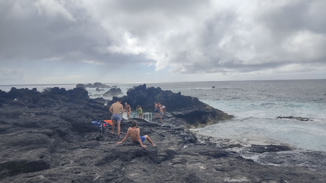 Llegó la hora del almuerzo y decidimos hacer una parada en Sete Cidades. Intentamos comer en Lagoa Azul pero estaba lleno y al final lo hicimos en Sao Nicolau, un sitio popular con buffet libre en el que comimos maravillosamente. Para reposar la comilona nos dirigimos a la Praia Dos Mosteiros, a tan solo 10 kilómetros, aunque pequeña es supertranquila y con unas visitas impresionantes. Retomadas las fuerzas dimos un paseo superagradable por el pueblito y la costa hasta las Piscinas naturales de Caneiros para darnos el último chapuzón antes de acabar el día.