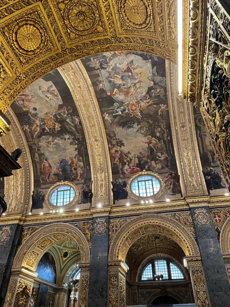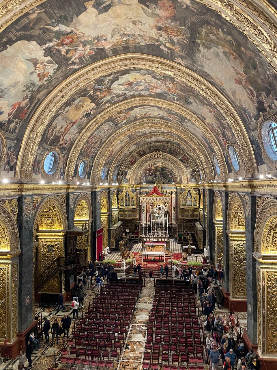 La religiosidad de los malteses es algo que los hace famosos. El país tiene 365 iglesias, una por cada día del año (al menos los no bisiestos), pero si tenemos que quedarnos con alguna esta es nuestra selección: La Concatedral de San Juan es la visita que no puedes dejar de hacer. Los 15 euros que pagarás por la entrada serán los más aprovechados de tu viaje. Te dan una estupenda audioguía que te explica todos los detalles de la impresionante decoración del interior de este majestuoso edificio, que contrasta con el sobrio exterior. Calcula al menos una hora y media para visitar todas las capillas, subir a la galería y alucinar con la pintura de Caravaggio. El Museo catedralicio estaba en obras cuando nosotros fuimos.