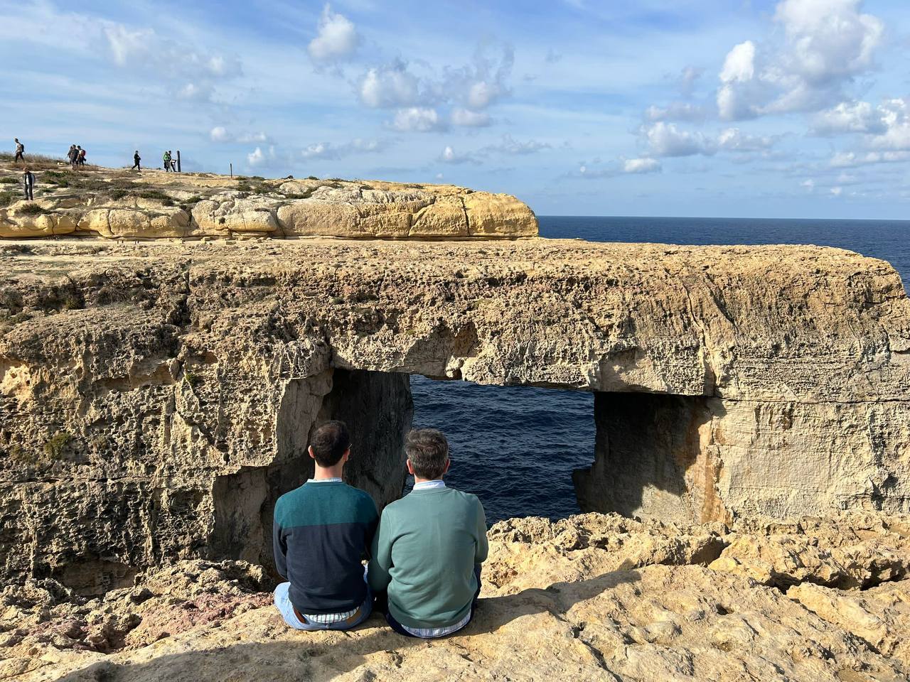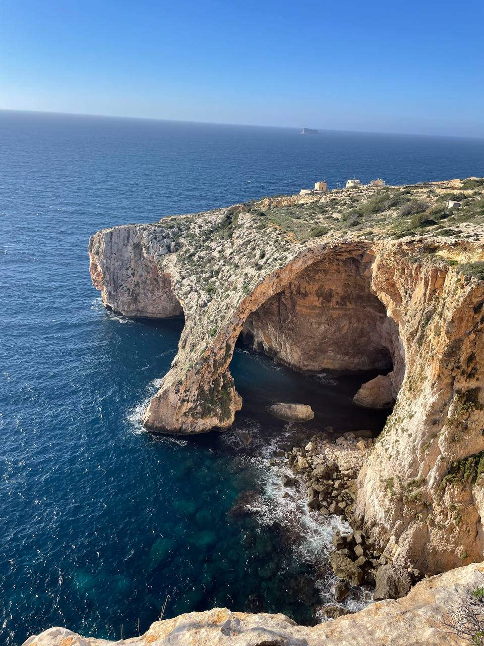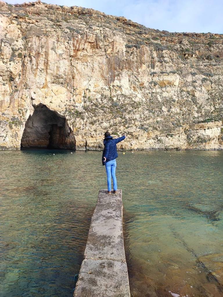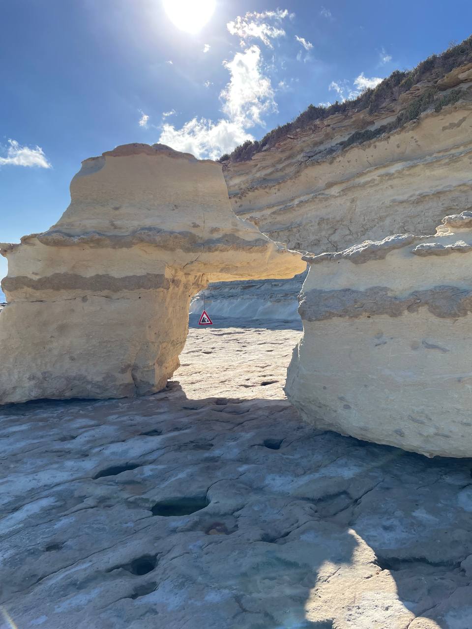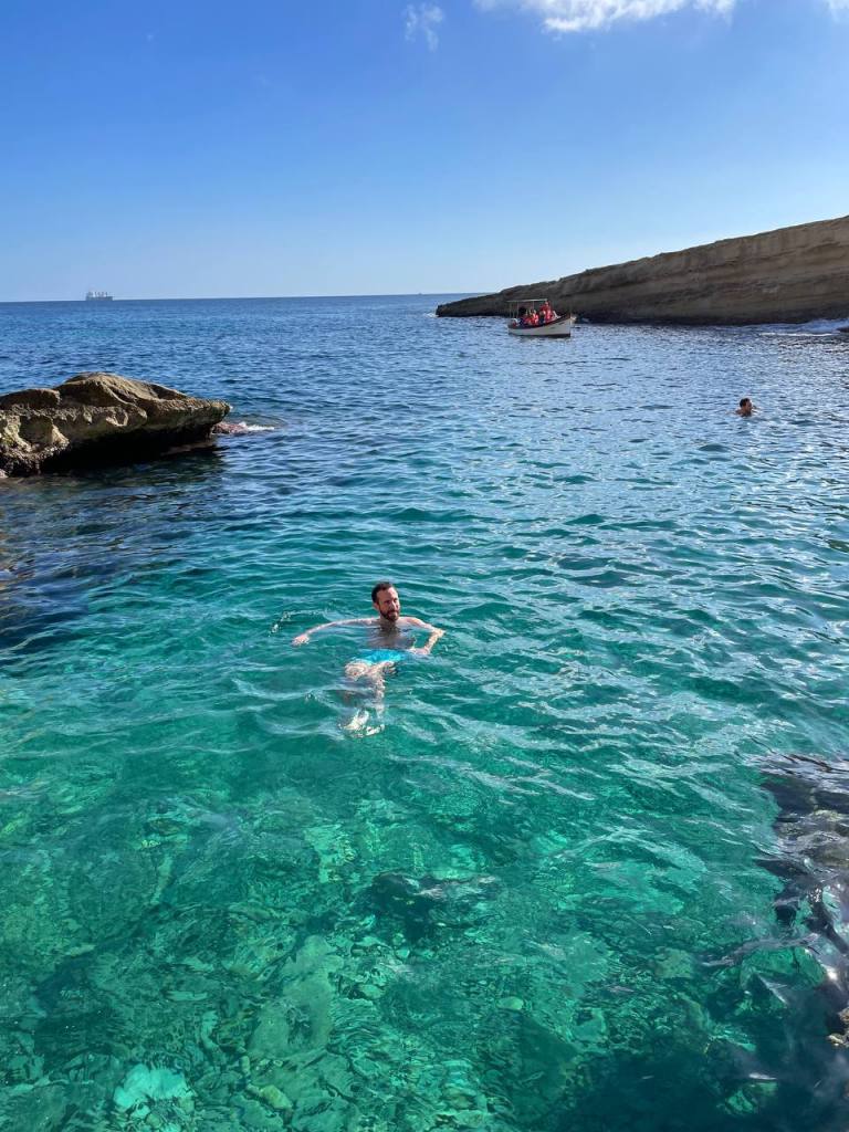 Te cuento la ruta que seguimos ese día y que tuvo mucha naturaleza. Comenzamos la jornada en el mar interior de Dwejra. Es un sitio muy guay donde al menos echarás una hora por todo lo que hay alrededor. Es un pequeño pueblo pesquero interior que se comunica con el mar abierto a través de una cueva. Desde allí parten paseos en barco que te llevan por la costa. A 5 minutos caminando están las piscinas naturales de Blue Hole y se pueden ver los restos de la Azure Window que en 2017 colapsó en una tormenta. De ahí fuimos dando un paseito por la bahía con unas impresionantes vistas de acantilados hasta llegar a esta miniplaya de San Lawrence con unos pequeños almacenes para pescadores y embarcaderos muy curiosos.