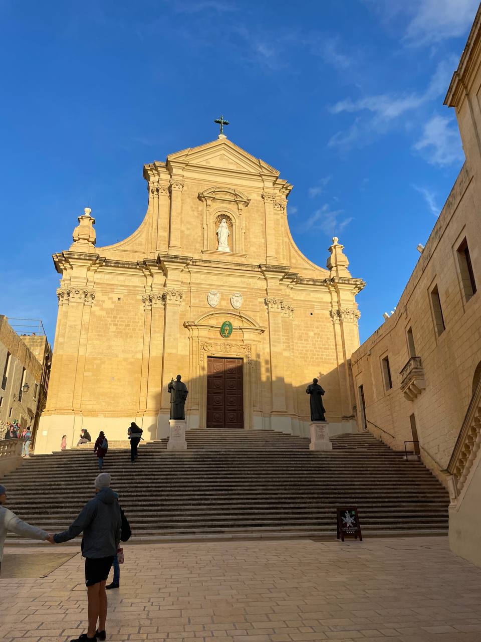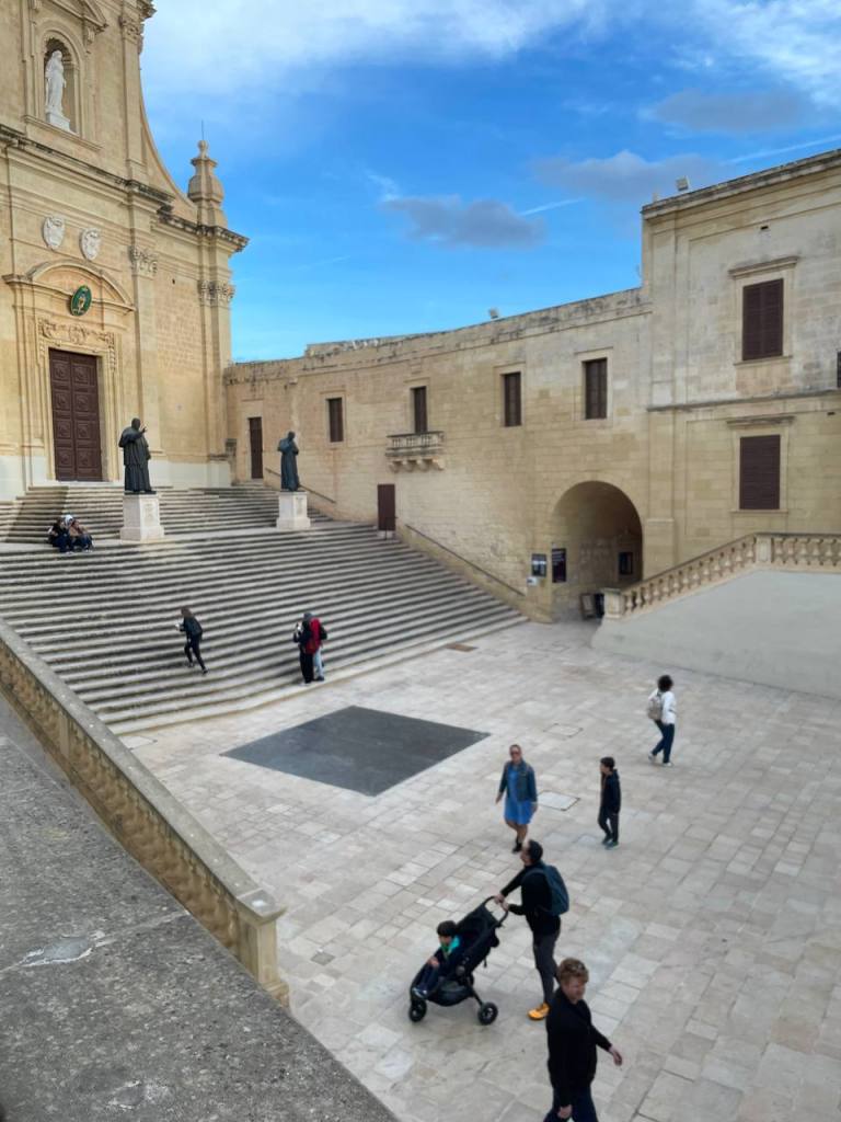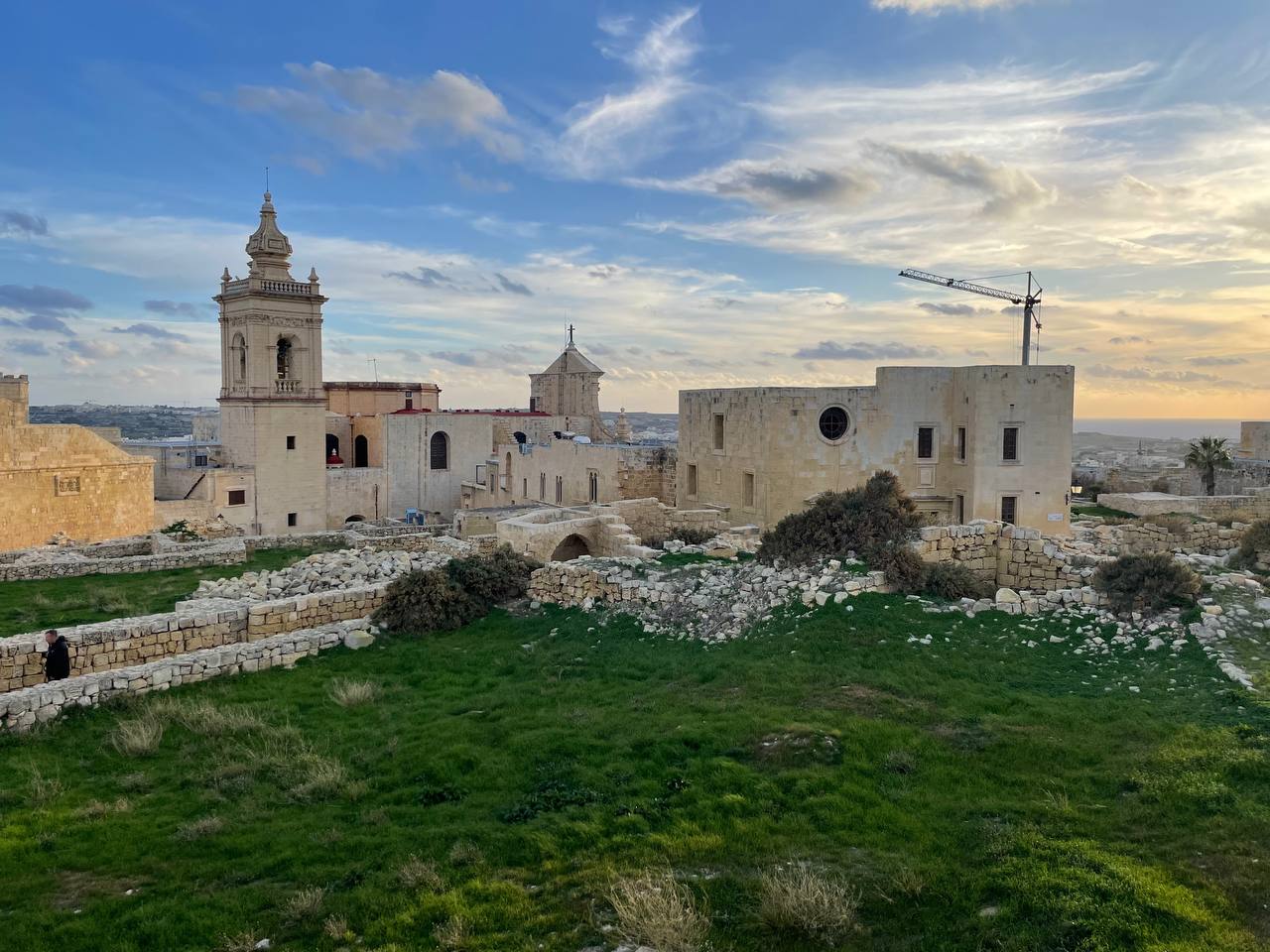 De ahí fuimos a Victoria, la capital de la isla, que es una ciudad muy interesante por su enorme patrimonio. Aparcamos junto al convento de San Agustín y de ahí iniciamos un paseito por las callejuelas del barrio de San Jorge en el que te recibe una escultura del santo matando al dragón hasta llegar a la Basílica de San Jorge y de ahí a la Plaza de la Independencia. Ahí comienza la subida a la antigua Ciudadela de Victoria una fortaleza que desde hace pocos años se está recuperando. Tienes la opción de pasear gratuitamente por sus callejuelas y ver las impresionantes fachadas de la Catedral, las visitas desde las murallas y bajar a los jardínes del foso. Todo esto te llevará al menos una hora. También puedes comprar una entrada para visitar el museo de arqueología, la antigua prisión y el interior de la Catedral.