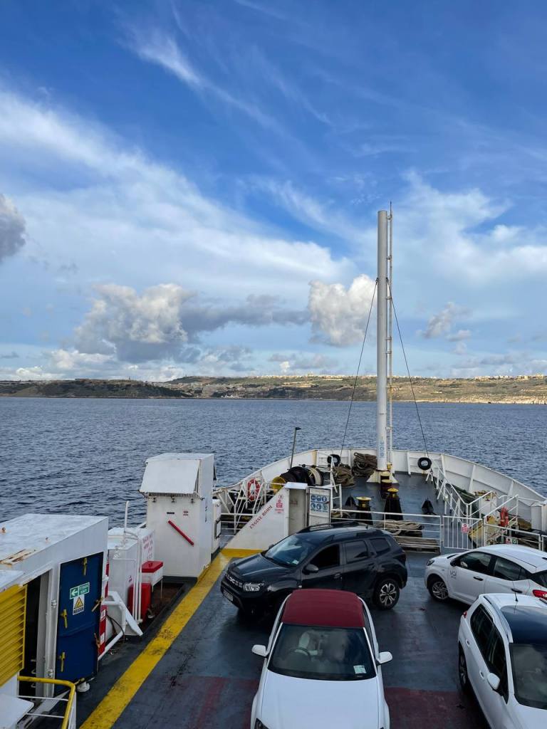 En Gozo hay bastantes menos turistas que en Malta y está lleno de sitios interesantes que visitar. Si no tienes coche de alquiler lo más fácil quizás es que pilles uno de los ferrys que diariamente salen de La Valeta. En nuestro caso fuimos a Cirkewwa, el punto más al norte de la isla de Malta, de donde salen cada media hora ferrys para Gozo. El viaje de ida y vuelta cuesta 15 euros por vehículo con conductor más 5 euros por cada pasajero adicional. A la ida no se paga, solo a la vuelta. El trayecto dura menos de 15 minutos y pasas junto al islote de Comino hasta llegar al puerto de Mgarr, ya en Gozo.
