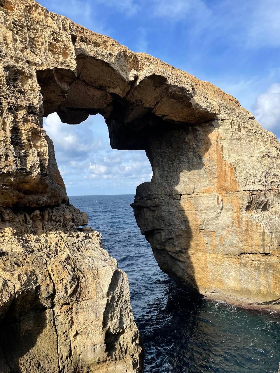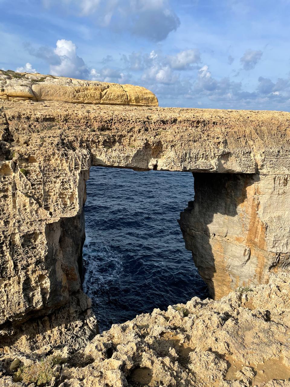 A 10 minutos del santuario está Wied il-Mielaħ, un espectacular mirador al que se llega por un caminito señalizado junto al acantilado para terminar viendo una formación muy similar a como debió ser la Azure Window. Vale la pena acercarse.