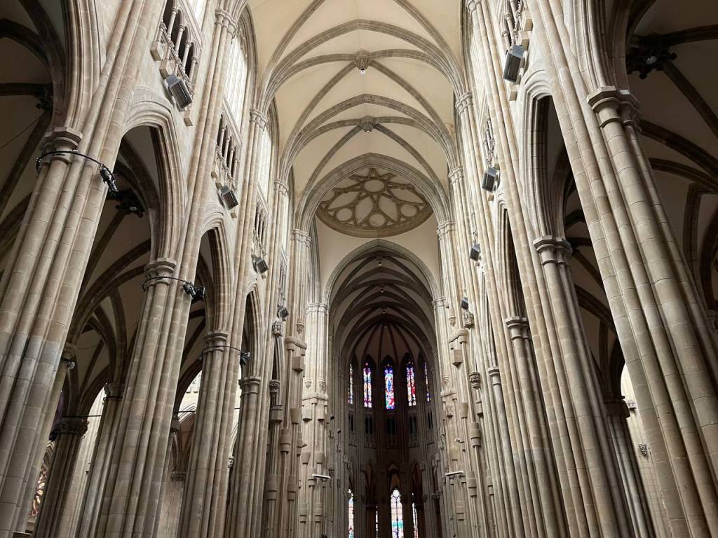 Pues si, Vitoria ahora tiene dos Catedrales, la vieja y la nueva, pero hasta mediados del siglo XIX no tenía ninguna. La que ahora es conocida como la Catedral Vieja era en verdad una iglesia colegial, porque Vitoria pertenecía al Arzobispado de Burgos. Cuando en 1851 Vitoria se independiza como diócesis se decide construir una nueva Catedral en el ensanche de la ciudad, y la Colegiata de Santa María, en el casco antiguo, es nombrada provisionalmente como Catedral. Lo de provisional es un decir, porque la Catedral Nueva no se empezará a construir hasta 1907 y la cosa se la tomaron con tranquilidad porque no fue inaugurada hasta 1969. El proceso se había dilatado tanto que la ciudad se acostumbró a vivir con dos Catedrales, la vieja y la antigua.