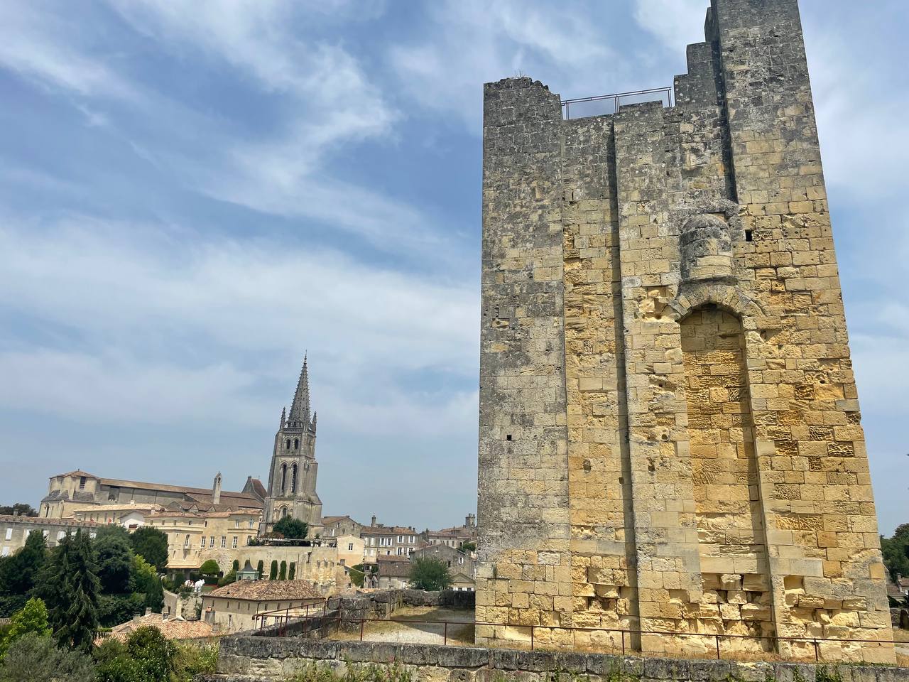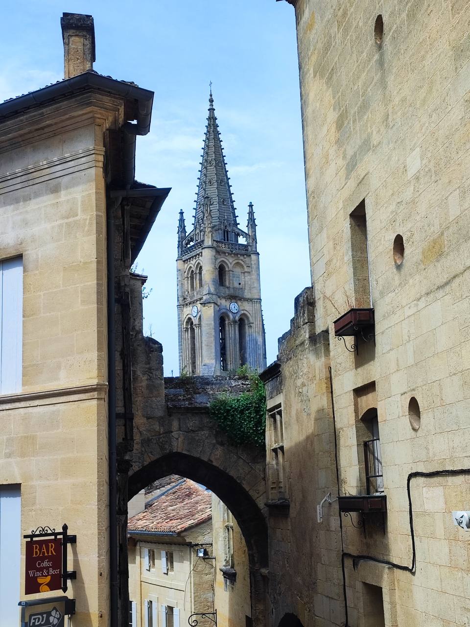 Nuestra primera parada fue en la Oficina de Turismo y fue todo un acierto porque nos dieron las claves de las cosas más importantes que visitar en este precioso pueblo en una mañana. Lo primero que hicimos fue subir al campanario de la iglesia que está justo en frente de la oficina de turismo. La entrada cuesta 2 euros y la llave te la dan en la propia oficina. Desde arriba se ve absolutamente toda la población y las decenas de chateaux y viñedos que la rodean. La inmensa torre se construye durante la Edad Media para guiar los pasos de los peregrinos del Camino de Santiago para que se acercaran al lugar donde siglos antes el ermitaño Saint-Émilion había decidido construir su hogar.