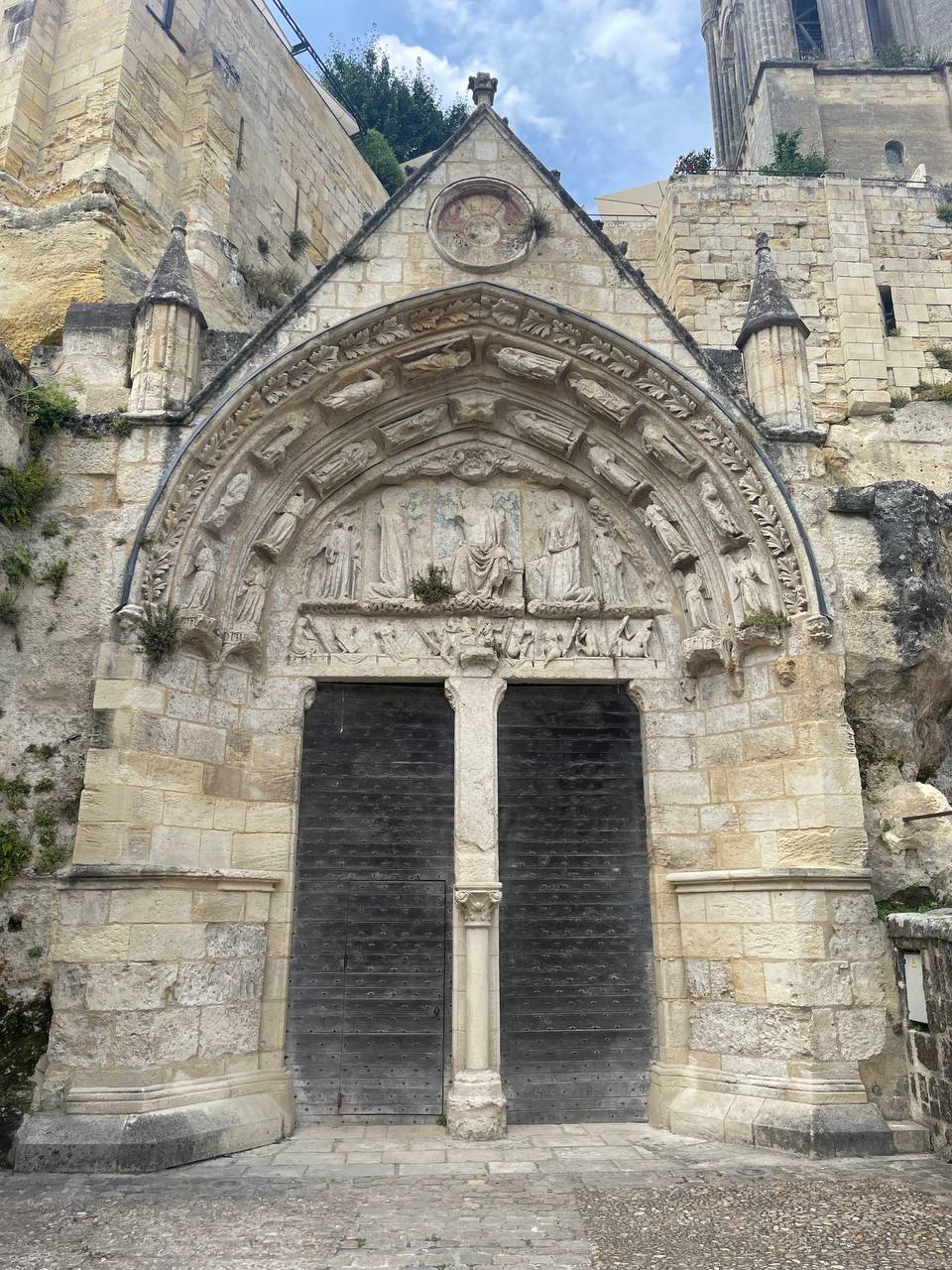 Y es precisamente justo debajo del campanario donde se encuentra el complejo de cuevas y construcciones subterráneas que dió origen a la población. Para visitar las Iglesias Monolíticas hay que hacerlo con una visita guiada (también las hay en español), ya que el espacio hoy es una propiedad privada perteneciente a una familia local. La entrada vale 15 euros y se compra en la oficina de turismo. Vale muchísimo la pena. Nuestra guía nos mostró la cueva donde el ermitaño Saint-Émilion vivía y empezó a hacer sus milagros. Sobre ella se construyó una pequeña ermita en la que recientemente se han descubierto unas preciosas pinturas murales. De ahí te dirige a las antiguas catacumbas explicando cómo la aristocracia francesa desarrolló este complejo para encontrar su eterno descanso cerca de las reliquias de un santo tan prestigioso como Saint-Émilion. Por último, te muestran la impresionante iglesia monolítica, excavada en la roca en una impresionante estructura que te dejará con la boca abierta. La visita dura alrededor de una hora y es muy amena e interesante sobre todo si te toca una guía tan apasionada como Maeve. Tomar fotos durante la visita está prohíbido, por eso no tengo muchos documentos.