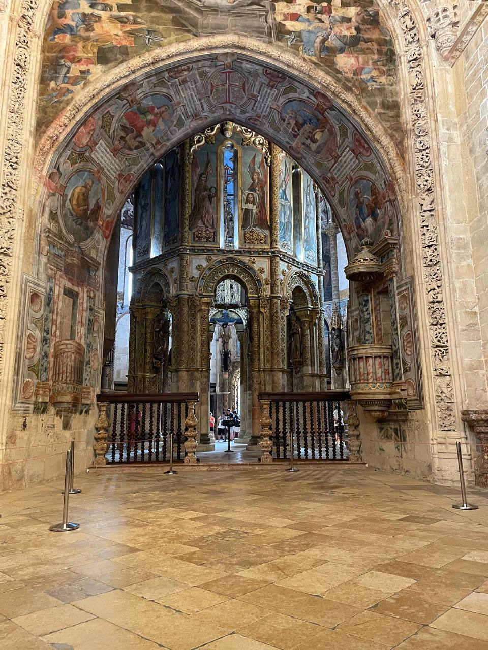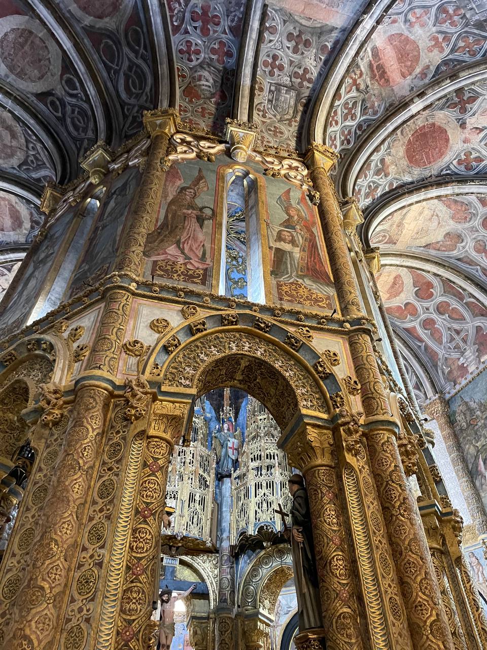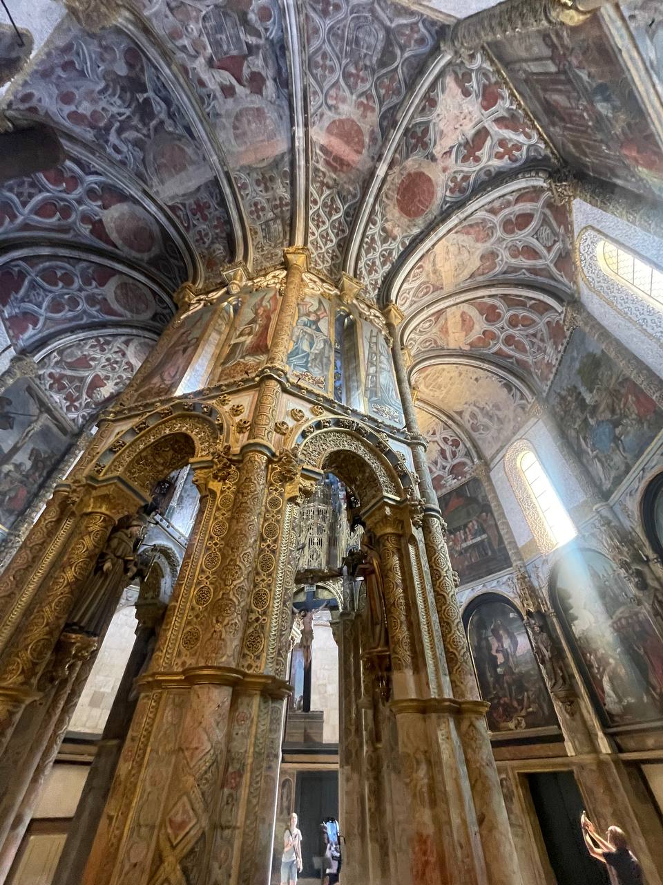 Habíamos oído hablar de este lugar, pero nuestra visita superó todas las expectativas. El principal motivo para acercarse a Tomar es visitar el apabullante Convento de Cristo de Tomar. Resérvate al menos dos o tres horas para recorrer todos los rincones de este impresionante complejo que fundaron los templarios y que ha estado estrechamente relacionado con la monarquía portuguesa. La entrada cuesta 15 euros (no es necesario reservar previamente, fuimos en pleno agosto y la compramos directamente allí) y vale muchísimo la pena. Se visitan numerosos claustros, los dormitorios de los caballeros, las terrazas e incluso el comedor y las cocinas. Pero, sin duda, la joya de la corona es la iglesia y su girola que reproduce la planta de la iglesia del Santo Sepulcro en Jerusalén y que forma un espectacular conjunto de arquitectura, escultura y pintura.