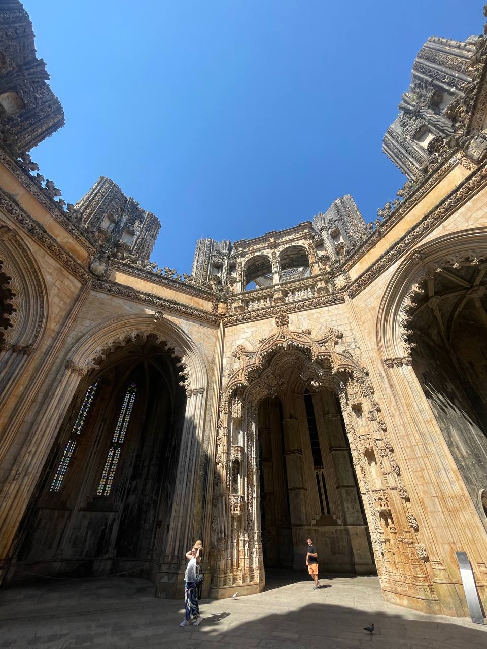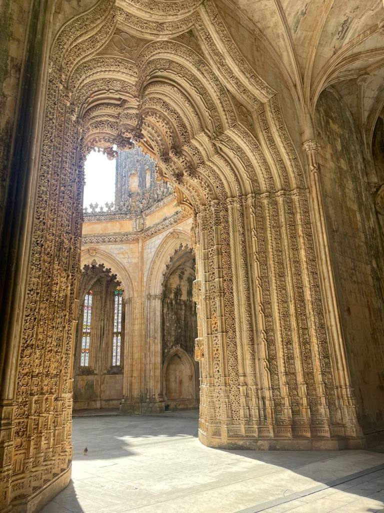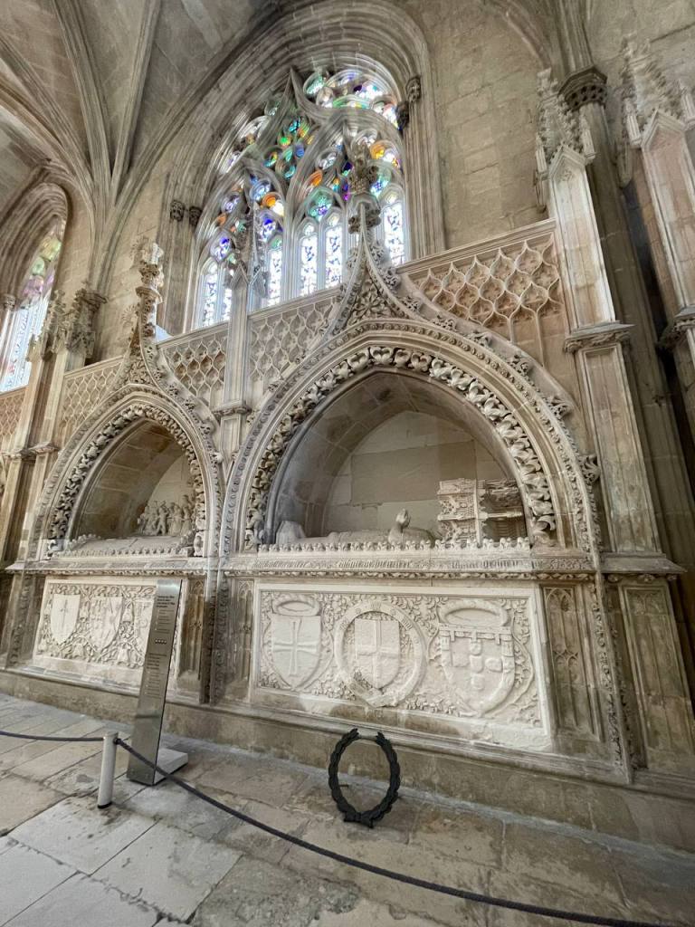 Muy cerca de Tomar y formando un triángulo monumental con Alcobaça (que explicaremos luego) está el Monasterio de Batalha. Ya el majestuoso exterior de estilo gótico te anticipa lo que vas a ver dentro. Desde fuera también se adivina que el proyecto iba a ser mucho más grandioso pero que por problemas técnicos y económicos algunas capillas se quedaron sin acabar. El acceso a la iglesia es gratuito, pero hay una entrada que te permite ver la Capilla del Fundador, la Sala Capitular, el Claustro Real, el modesto claustro de Alfonso V y las inacabadas Capillas Imprerfectas. A través de todas estancias puede hacerse un recorrido por la Historia de la Corona portuguesa porque las tumbas de los principales reyes, reinas e infantes de Portugal están en este lugar. Incluso en la solemne Sala Capitular está la tumba del soldado desconocido siempre custodiada por una pareja de soldados. Junto a ella un pequeño museo dedicado a la participación de los soldados portugueses en distintos conflictos. La luz de las vidrieras, las fantasiosas formas de las capillas y las tumbas son motivos más que suficientes para visitar este lugar mágico.