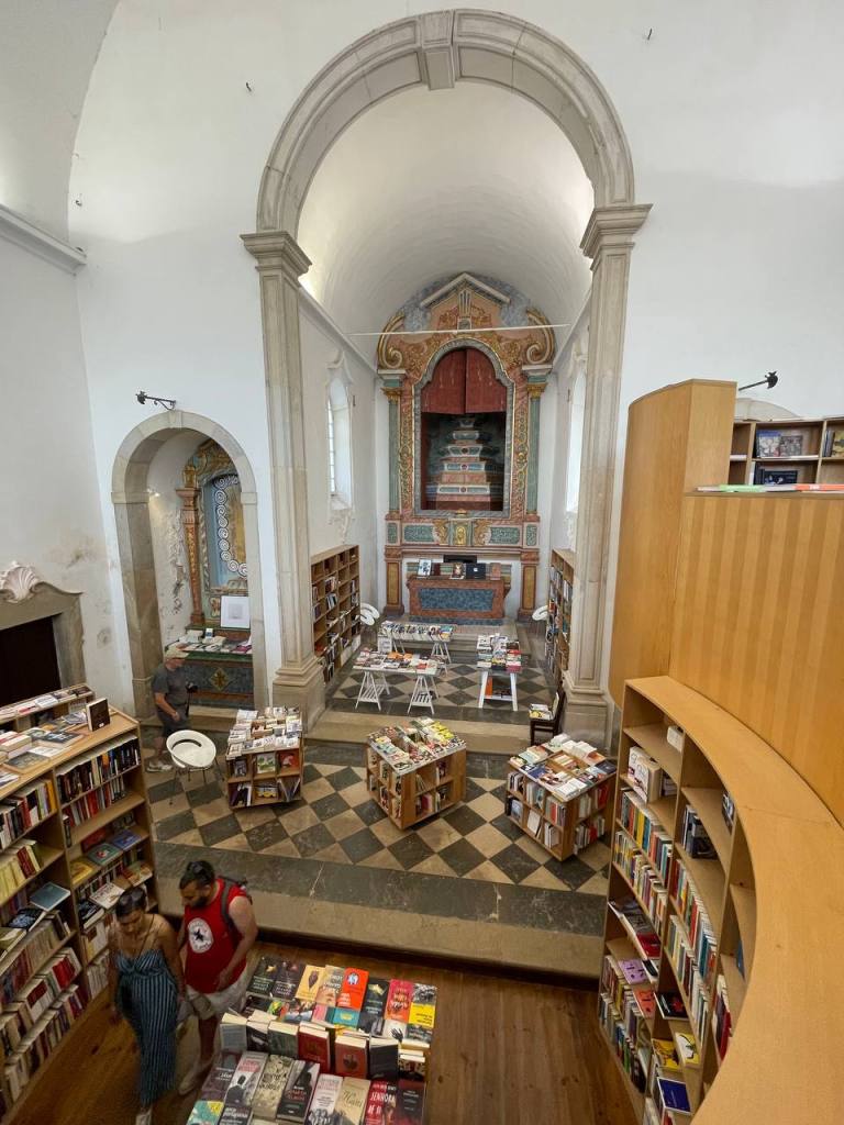 A menos de media hora al sur de Alcovaça, está Óbidos que quizás fue de todos los sitios que visitamos el que vimos un poco más turistificado. Óbidos es un pueblo medieval de postal, rodeado de murallas, coronado por un castillo que ahora es una Pousada (la versión lusa de los paradores) y que recientemente ha incorporado una nueva señal de identidad a su ADN: está repleto de librerías. En realidad hay dos librerías preciosas que comenzaron un poco con este sello y luego simplemente muchas tiendas han seguido esa estela «decorando» con libros. Las librerías que no te puedes perder son Librería del Mercado (que mezcla libros y alimentación) y Librería Sao Tiago, que ocupa una antigua iglesia.