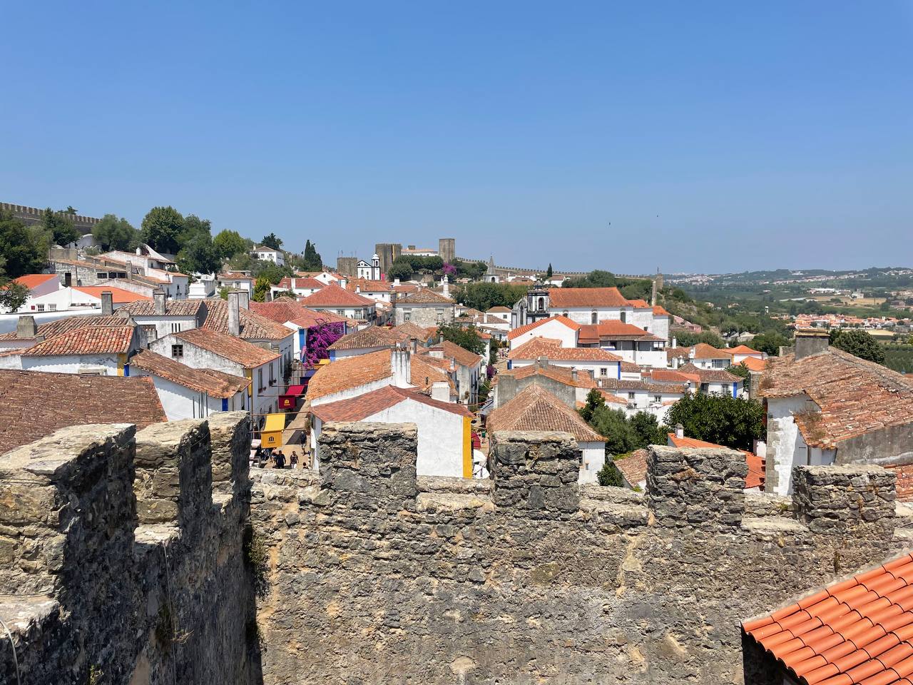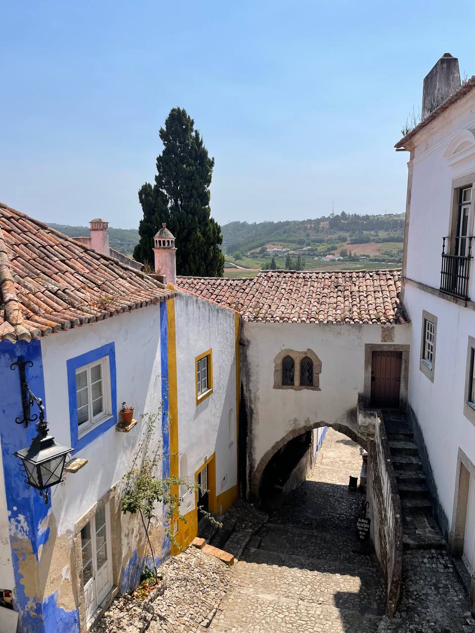 Meter el coche en la ciudadela medieval está prohibido, así que, casi de manera natural vas a llegar a este inmenso aparcamiento gratuito. A dos minutos del coche tendrás el acceso a la zona amurallada a través de la Porta da Vila. Desde ahí nuestra recomendación es alejarte todo lo que puedas de la calle principal (llena de gente y negocios para turistas) y perderte por las secundarias o incluso subir al camino de ronda de la muralla. En la Plaza de Santa María está la iglesia de Sta. María de Óbidos, con pinturas de la sevillana Josefa de Óbidos, una artista que aunque no es muy conocida en España llevó a Portugal todas las ideas artísticas de su ciudad natal, la Sevilla de Velázquez, Murillo y Zurbarán.