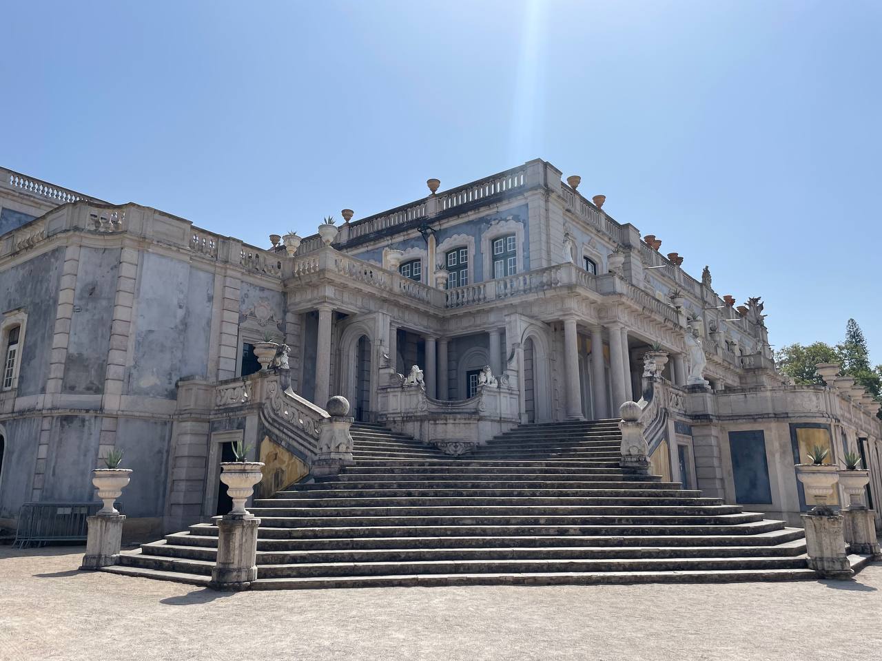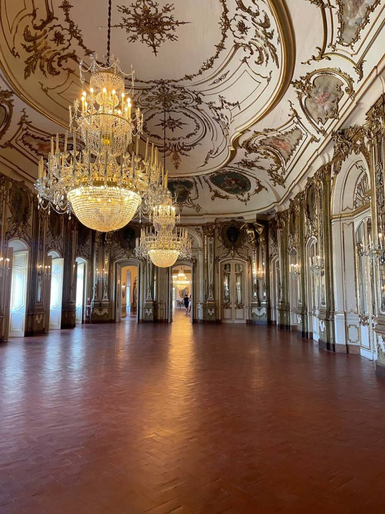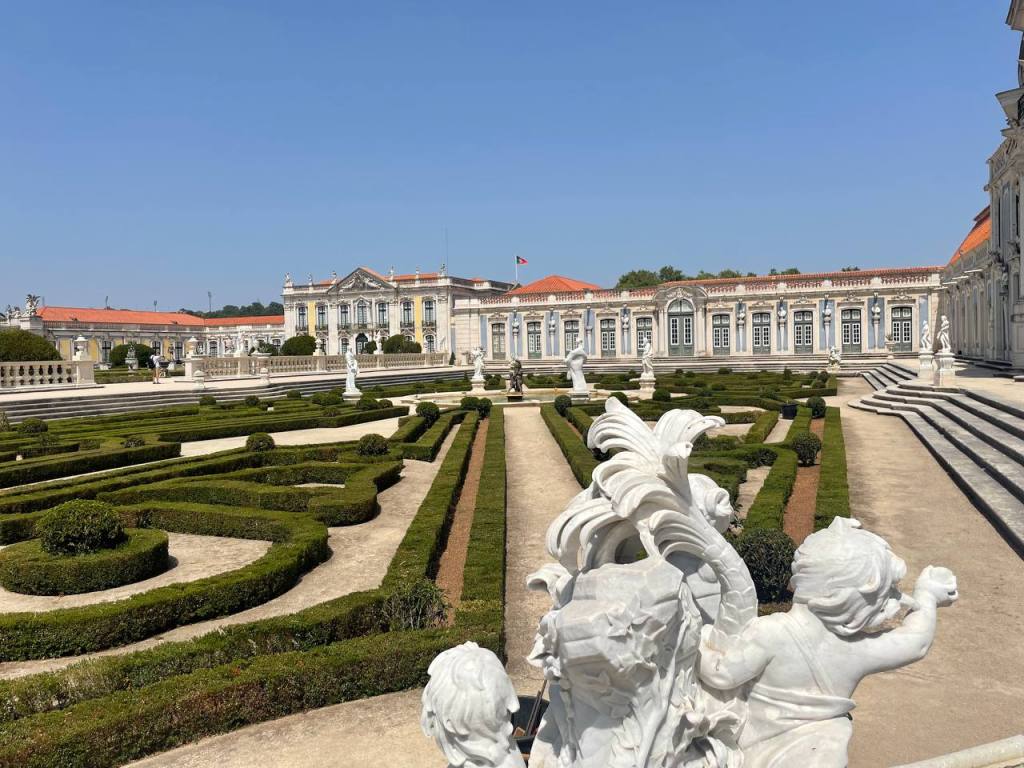 Un poco más al sur que los anteriores sitios, y ya de camino a otro destino, pudimos visitar el Palacio Real de Queluz, que fue la principal residencia de los Reyes portugueses después de que Lisboa quedara arrasada por el Terremoto. Fuimos en pleno agosto y no tuvimos que comprar entradas previamente ni guardar cola. El recorrido te enseña los principales salones ceremoniales que aún hoy usa el presidente de la República y una serie de habitaciones, comedores y dormitorios que te muestran como era la vida cortesana de la época. Incluso se visita el dormitorio donde murió Pedro I, el que además de rey de Portugal fue el primer emperador brasileño. El broche de oro lo ponen los espectaculares jardínes que rodean el conjunto.