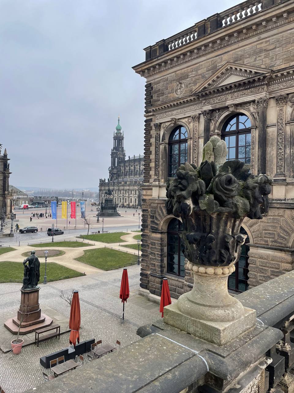 La entrada cuesta 16 euros (ojo, solo admiten efectivo) y da acceso a la Galería de los Maestros Antiguos, el Museo de la cerámica y el Museo de Matemáticas. A nosotros solo nos dio tiempo al primero porque estuvimos casi 2 horas fascinados con las inmensas colecciones todas con artistas de primera calidad de la pintura veneciana, Rafael, Caravaggio, Rubens, Rembrandt, Velázquez, Zurbarán y una interminable lista de pintores flamencos, italianos y alemanes por los que cualquier director de museo de Europa estaría dispuesto a matar con tal de tener una sola obra suya. Además, en la planta baja, hay una buena colección de arte egipcio, etrusco, griego y romano. De verdad que todavía estamos alucinando de lo que encierran esas cuatro paredes. La pieza fetiche del museo es la Madonna Sixtina de Rafael con los icónicos angelotes apoyados sobre la balaustrada que, llamadme cateto, yo estaba convencido de que estaba en Roma y ¡no! estaba allí mismo.