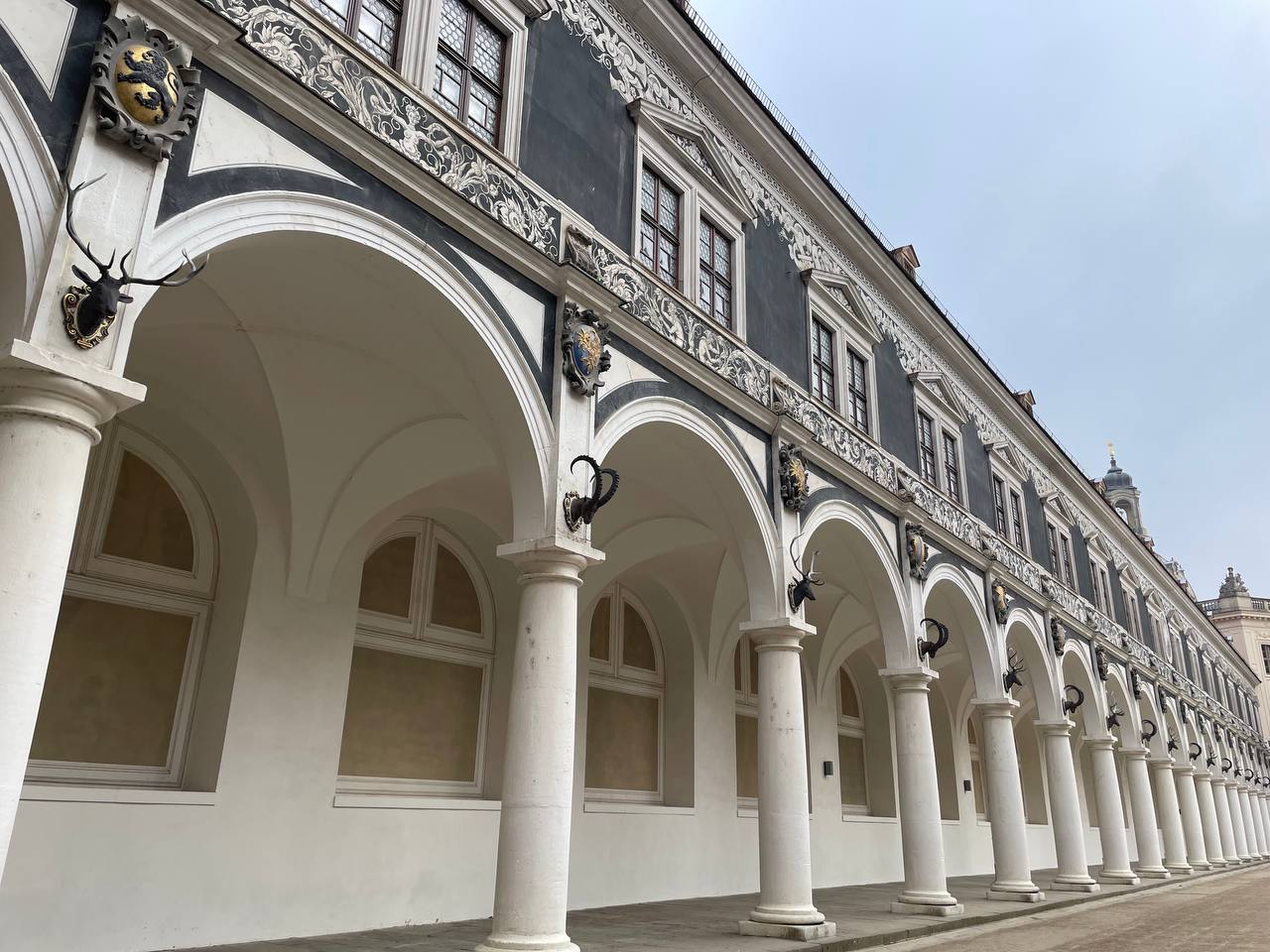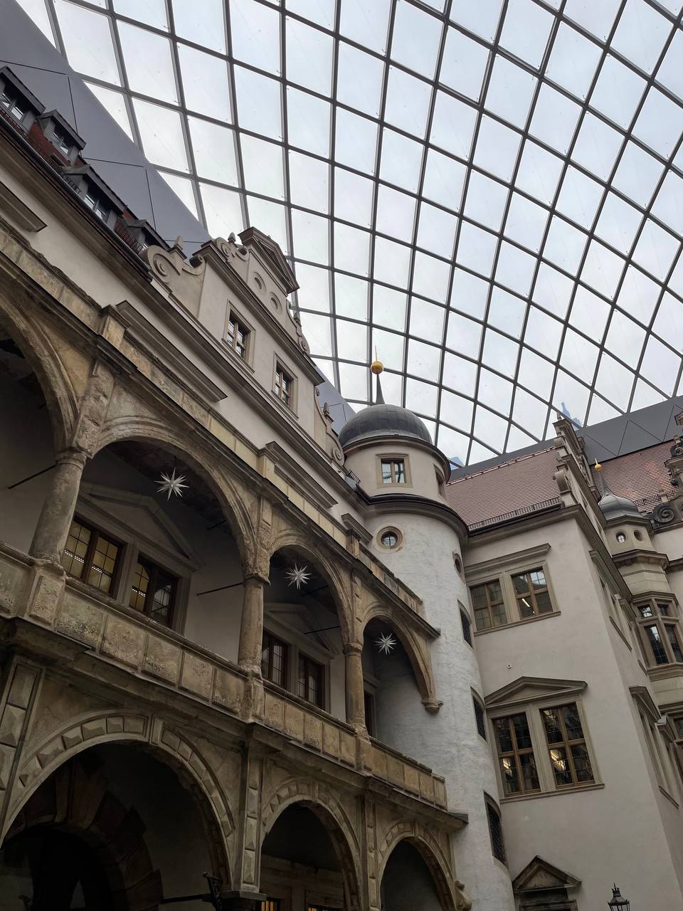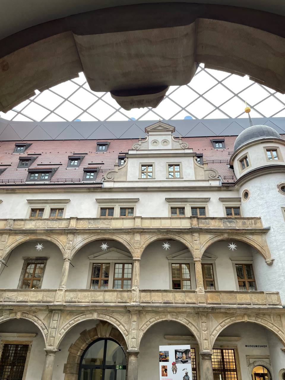 El recorrido continúa pasando por debajo del arco de la Puerta de Jorge, a mitad del tunel a la izquierda están los antiguos y monumentales establos, vale la pena asomarse para ver las arcadas del patio. Atravesando totalmente el túnel a la derecha está el acceso al castillo. Asómate al patio para ver la monumental cúpula de cristal que lo cubre. Nosotros no tuvimos tiempo de visitarlo, pero hay distintas entradas para visitar el gabinete de grabados en cobre, el gabinete de monedas o la exposición de armaduras. La joya de la corona es la Bóveda verde, que alberga los tesosos de Augusto el Fuerte: pinturas, esculturas, joyas… Toda la información en la web oficial.