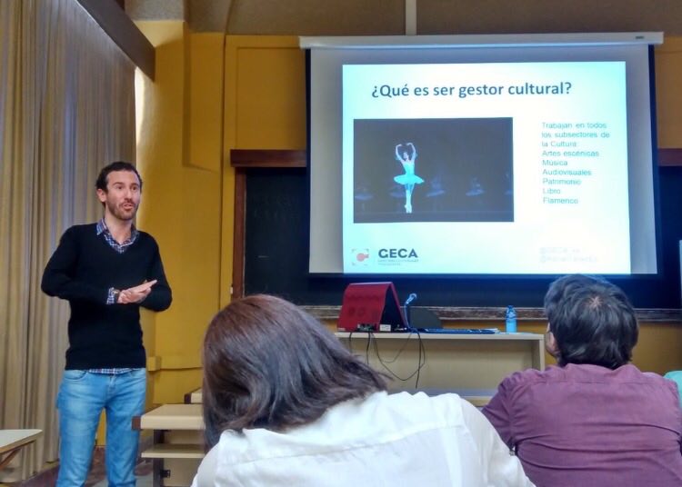 Bajo el título «La Cultura hecha profesión, la figura del gestor cultural» presenté al alumnado de ambas titulaciones las posibilidades laborales de uno de los sectores más dinámicos y versátiles en la actualidad.